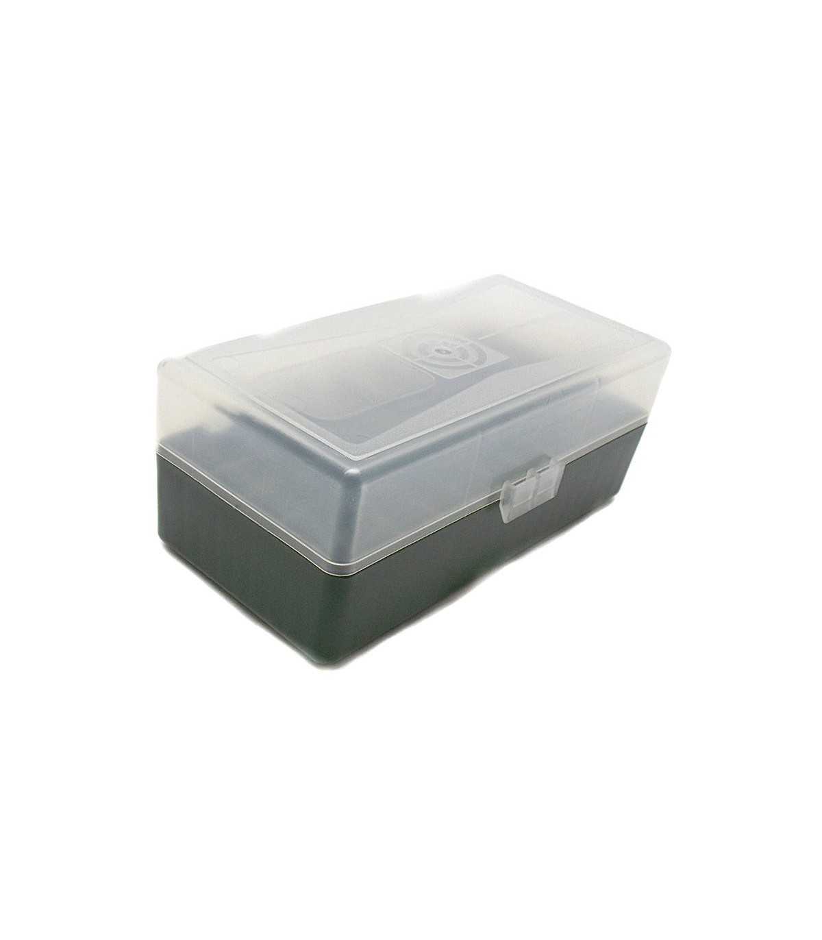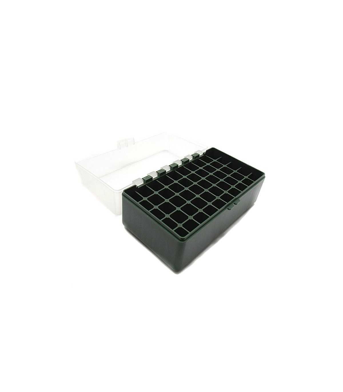 GREEN PLASTIC AMMUNITION BOX WHICH CAN SAFELY STORE UP TO 50 ROUNDS, CALIBERS: 223 REMINGTON, 17,221,222, 204 RUGER, 222 R.MAGNUM, 6X47