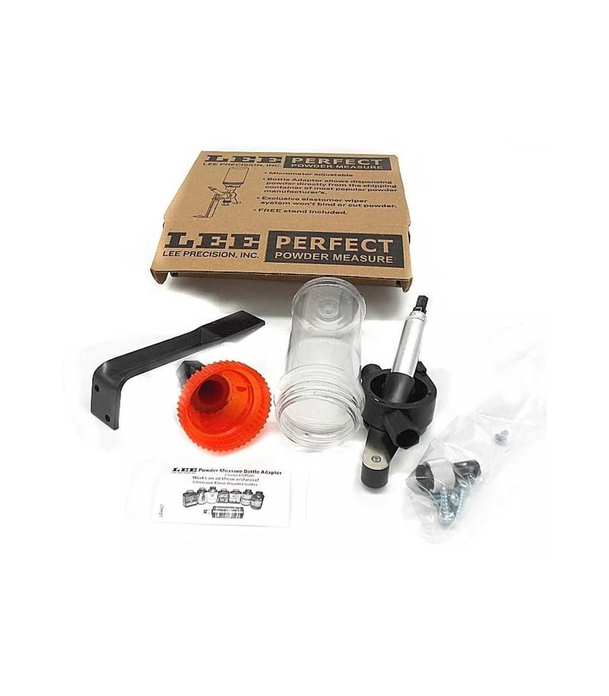 LEE PERFECT POWDER MEASURE IS A MICROMETER ADJUSTER THAT CAN BE USED ON THE INCLUDED BENCH MOUNTED STAND