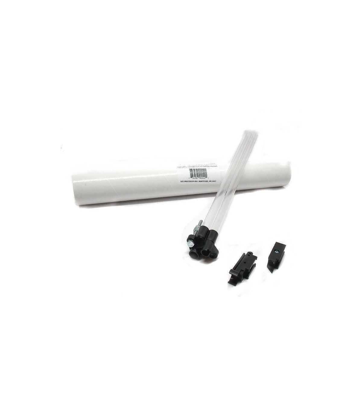 It comes with four transparent feeding tubes, slider case block and too long cartridge case lock