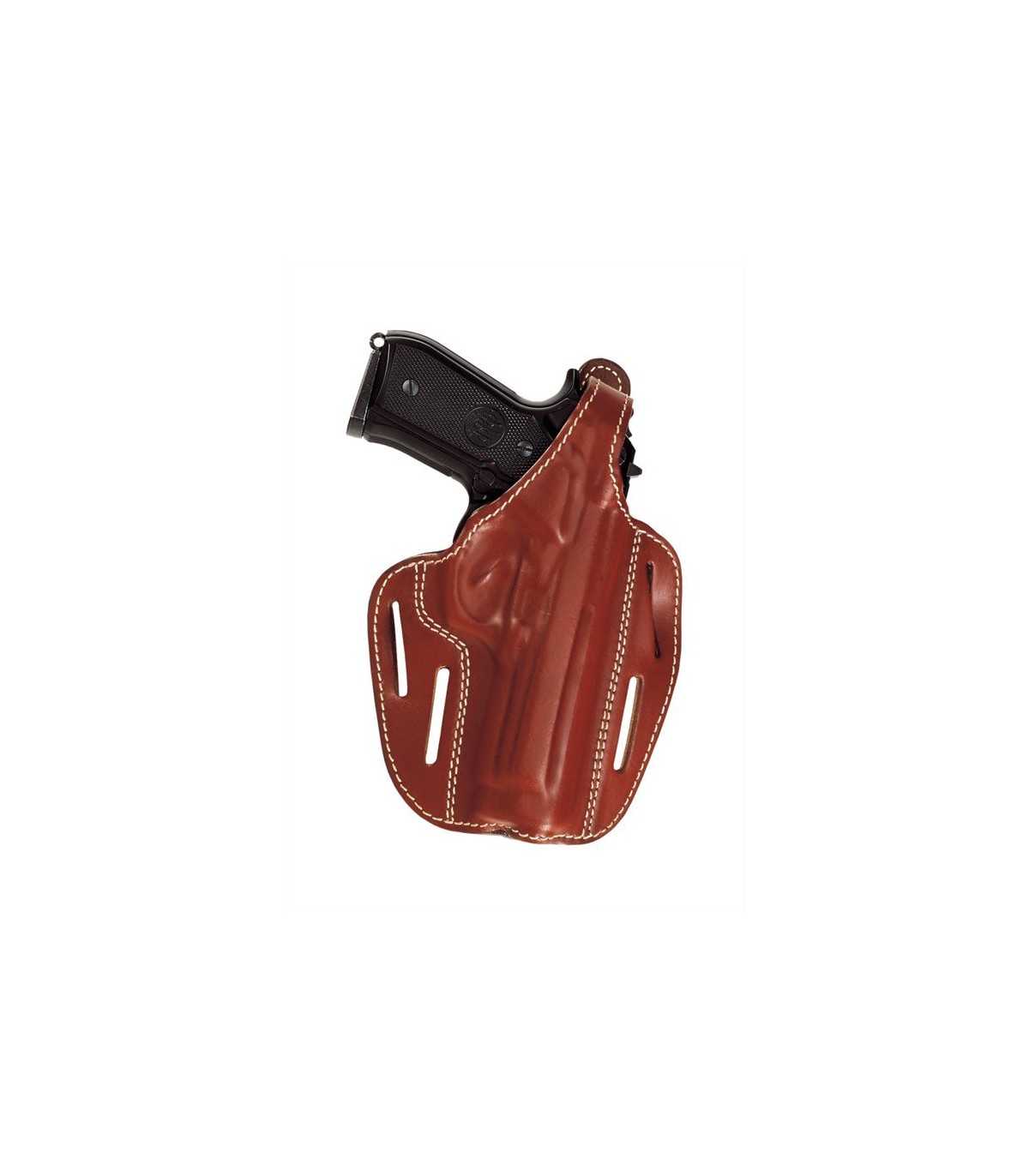 Belt lined leather holster, quick release snap, 4 belt loops.