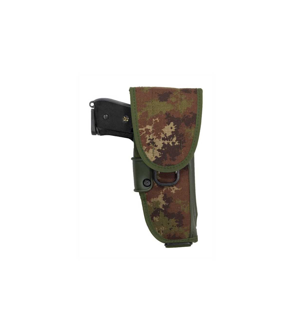 Nylon military ambidextrous holster reinforced with polymer insert, quick release flap, amovable steel belt loop, belt loops for 4 cm belt use, barrel cleaning stick inserted in front side, possibility to insert the quick release (included).