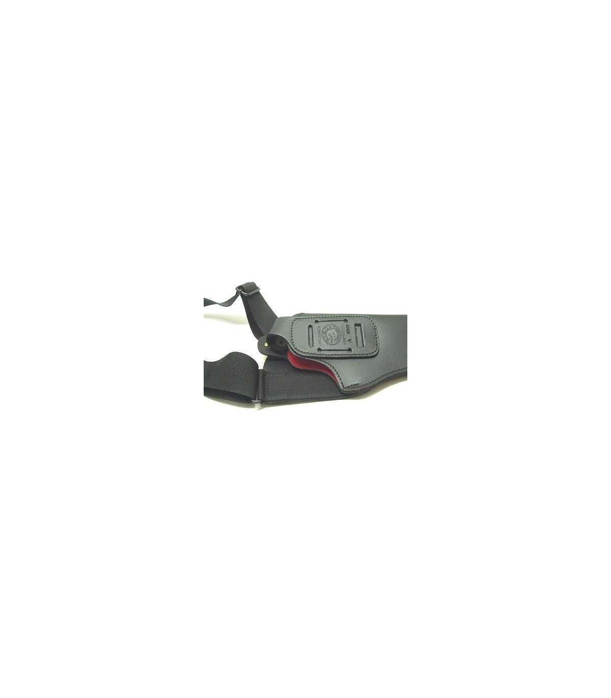 Multipurpose shoulder and belt lined leather holster.