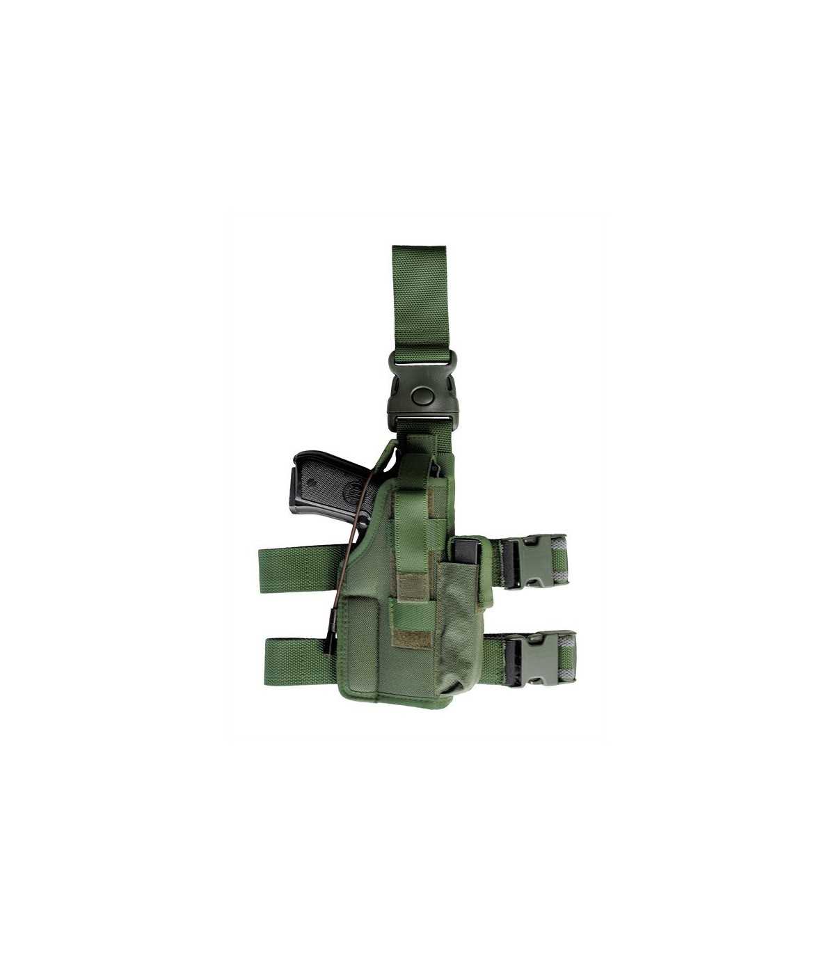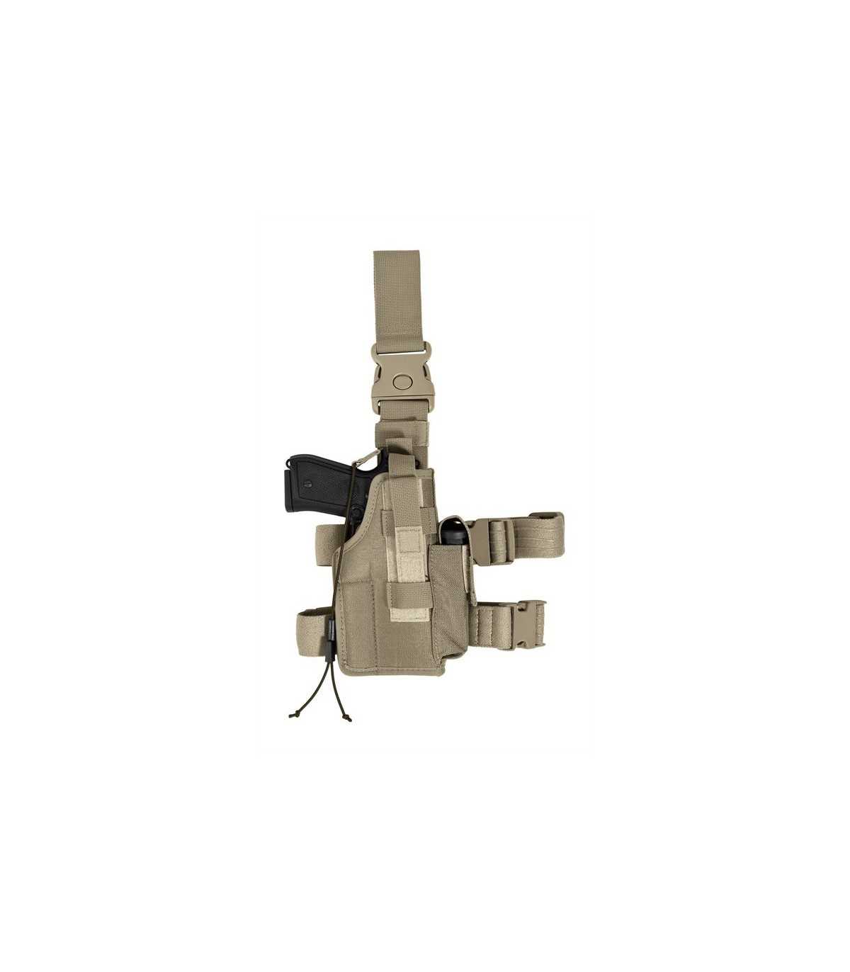 Two different positions: on the leg adjustable high or direct on the belt without thigh support and bands.