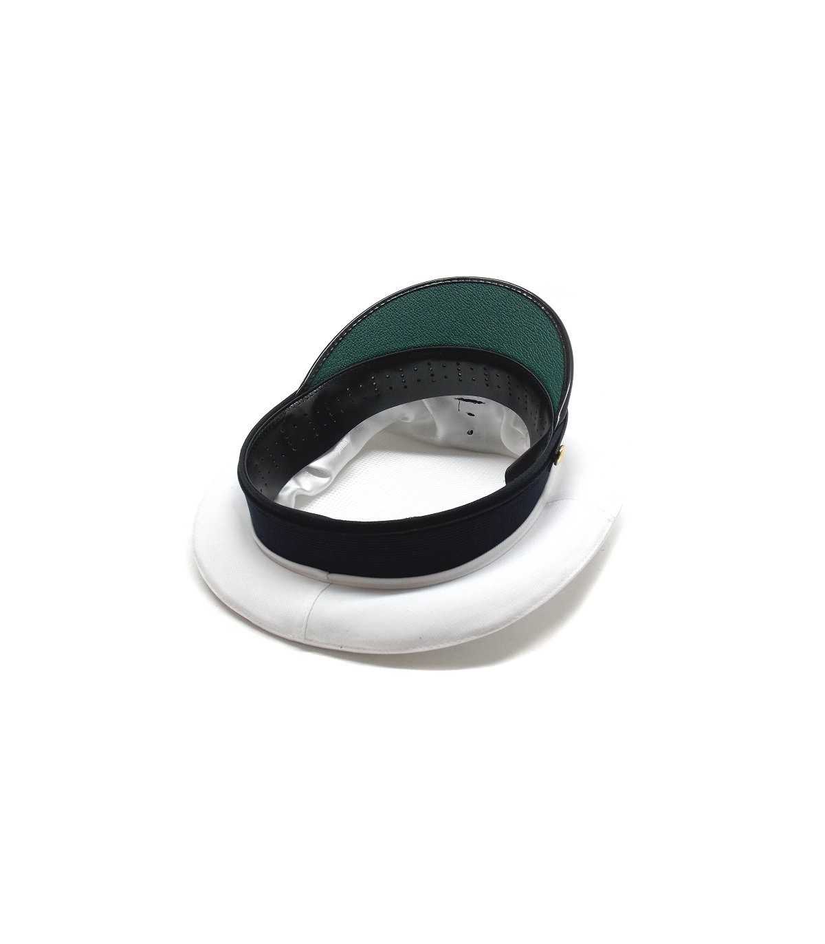 Dotato di 1 foderina, montata, in cotone bianca forata a 2,5 cm per il fregio e visiera semibulgara