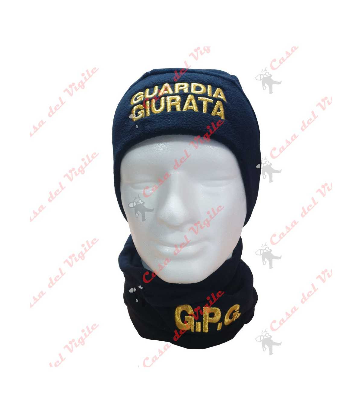 Completo Zuccotto e Scaldacollo in pile GPG Guardia Giurata Cappello a Papalina G.P.G.