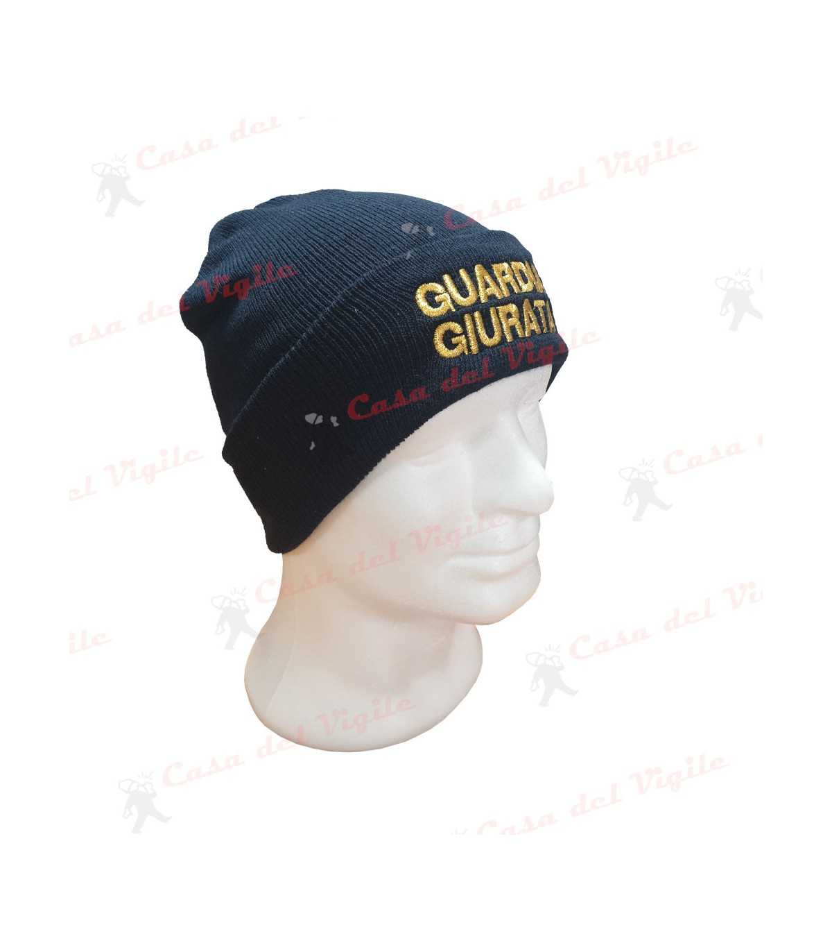 Papalina zuccotto in lana BLU con ricamo GUARDIA GIURTA Oro o Bianco Cappello GPG Vigilanza