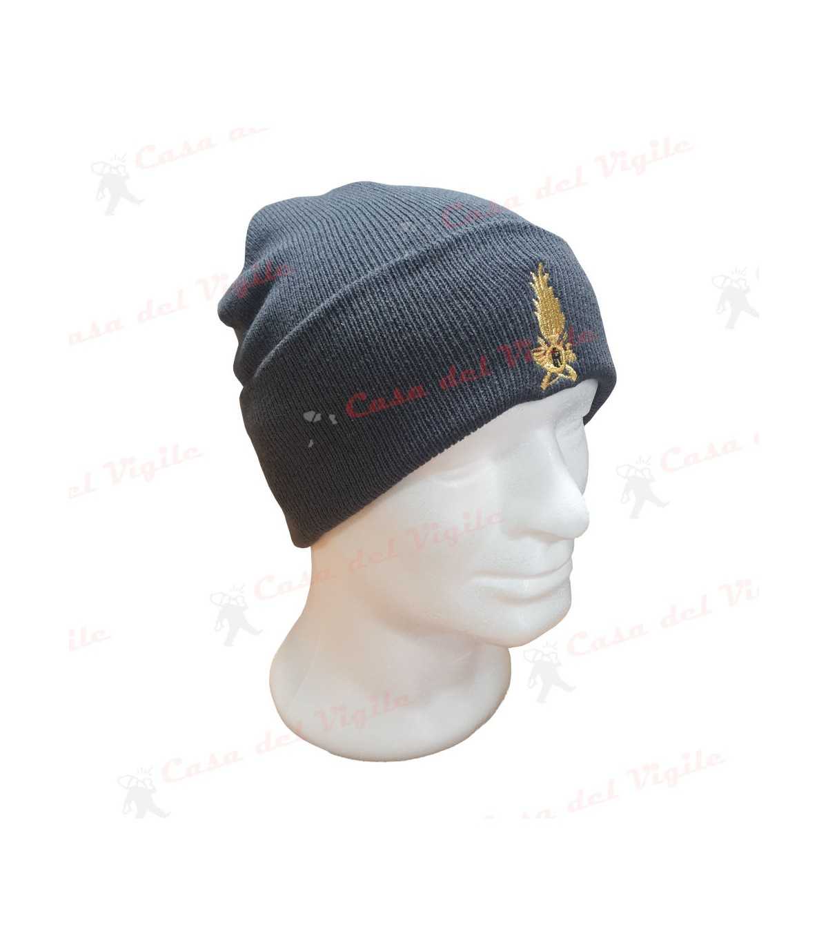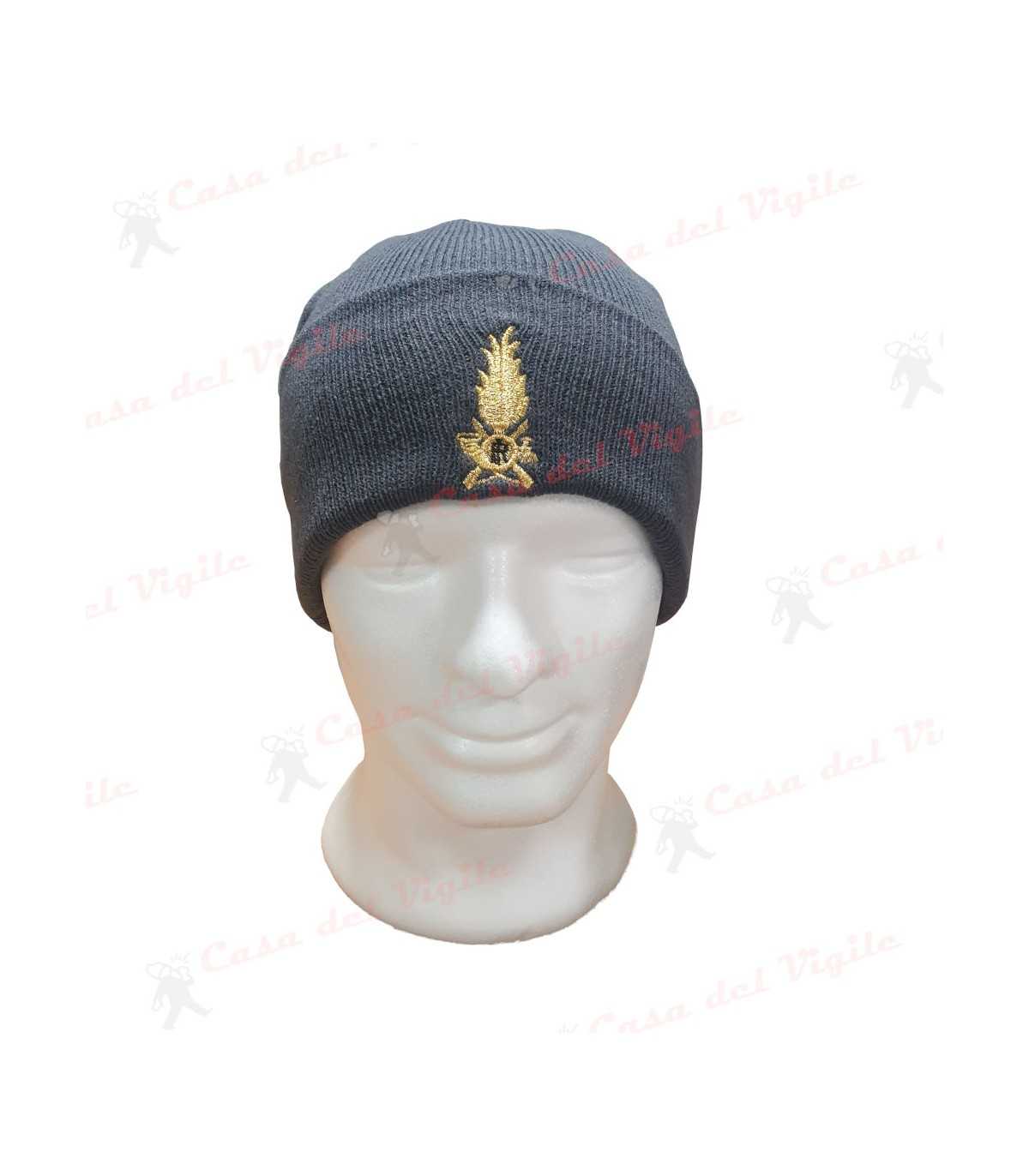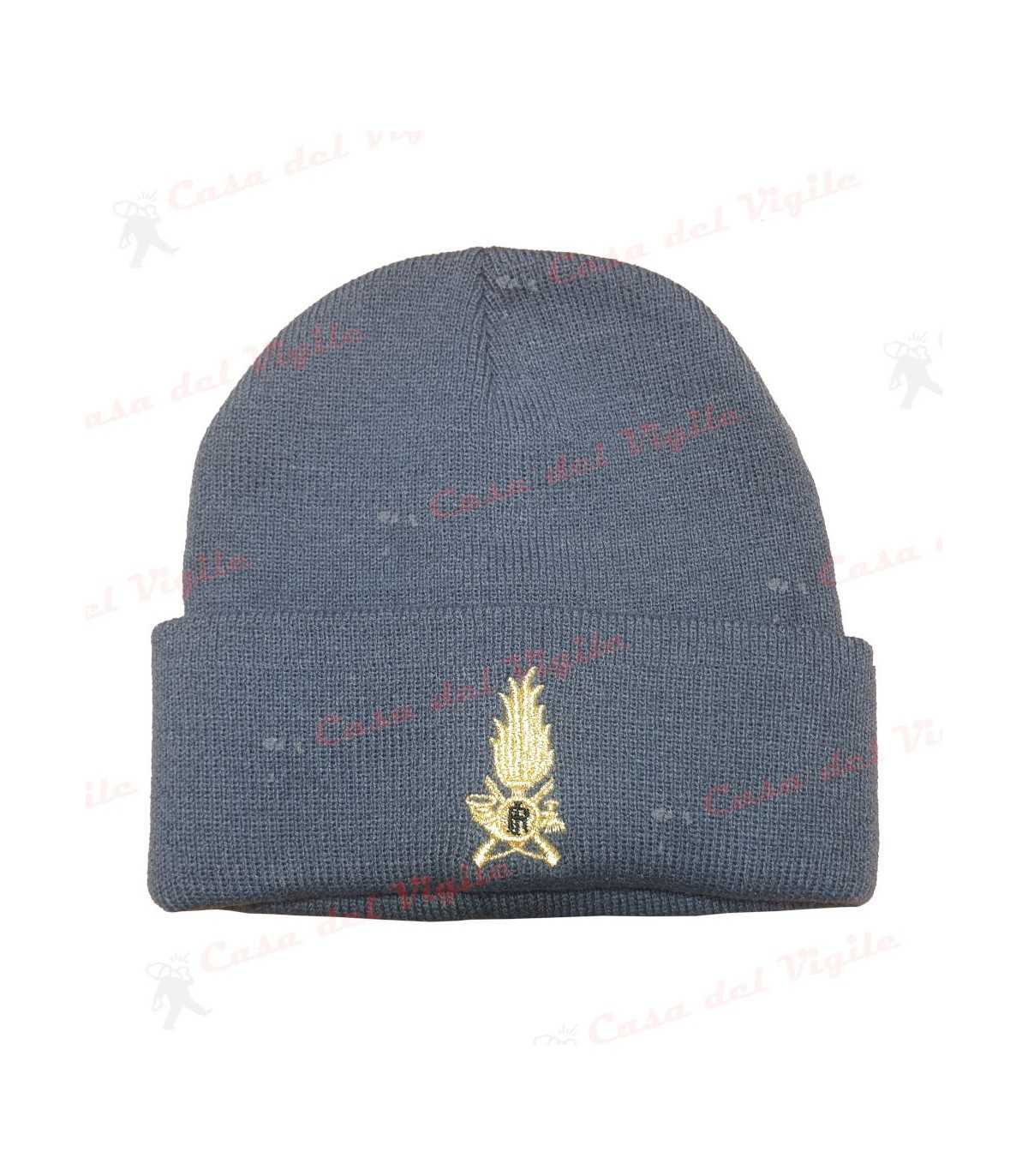 Papalina zuccotto in lana Grigio con fiamma oro Guardia di Finanza ricamata Cappello GDF