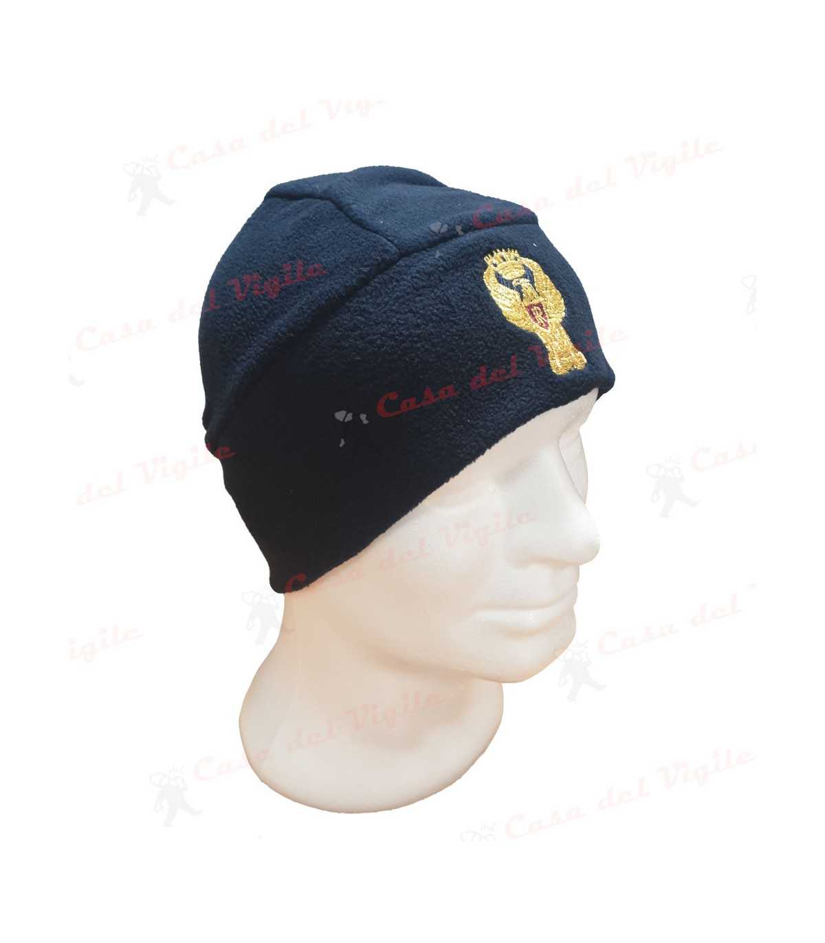 Papalina zuccotto in pile BLU con ricamo POLIZIA DI STATO Oro Cappello PS