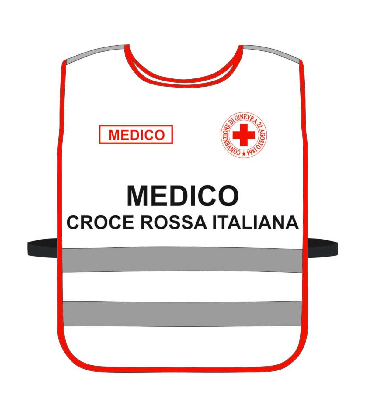 Pettorina Alta Visibilità CROCE ROSSA ITALIANA personalizzabile fondo BIANCO bordi rossi Corpetto CRI