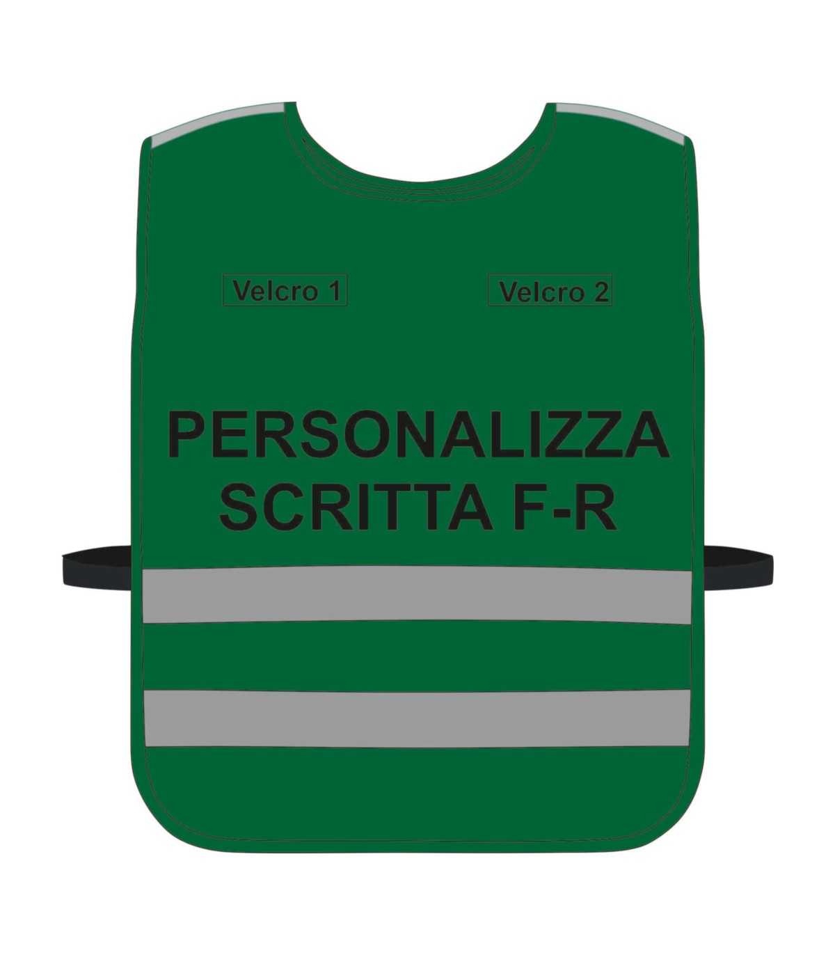 Pettorina Alta Visibilità personalizzata fondo VERDE bordo Verde Blu Giallo Fluo Nero Corpetto personalizzato