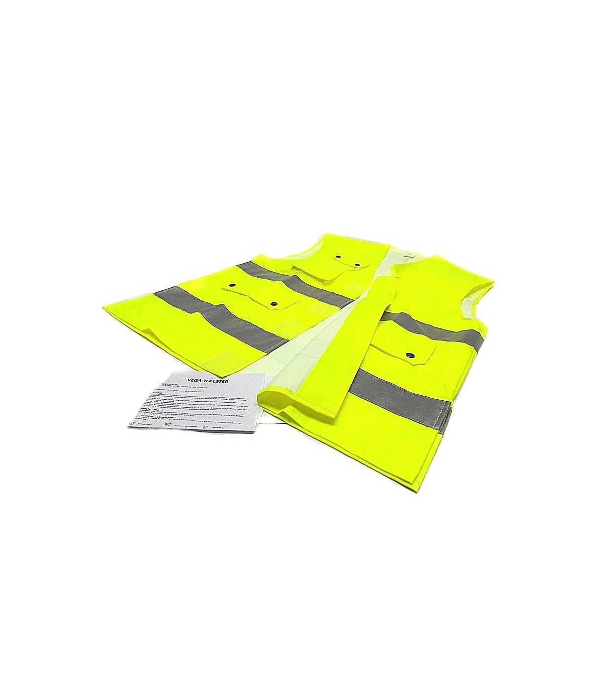 Gilet alta visibilita, 2 strisce rifrangenti a norma en471 ce classe seconda, porta radio, 2 tasche multiuso e strisce rifrangenti