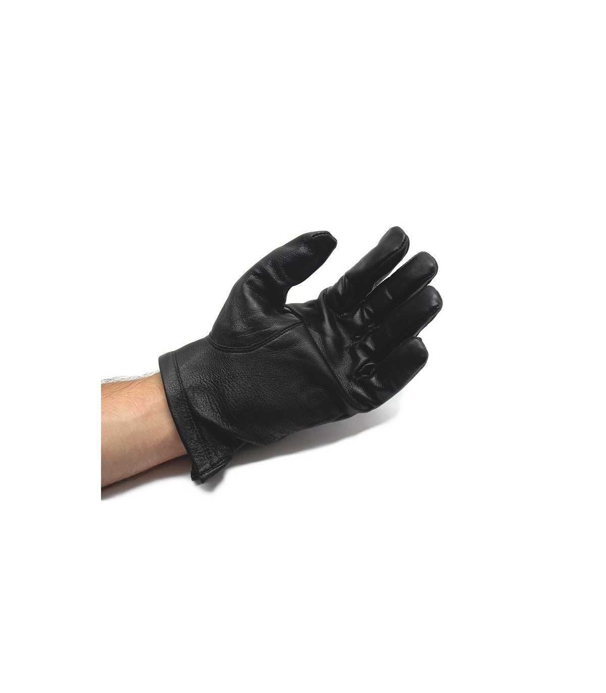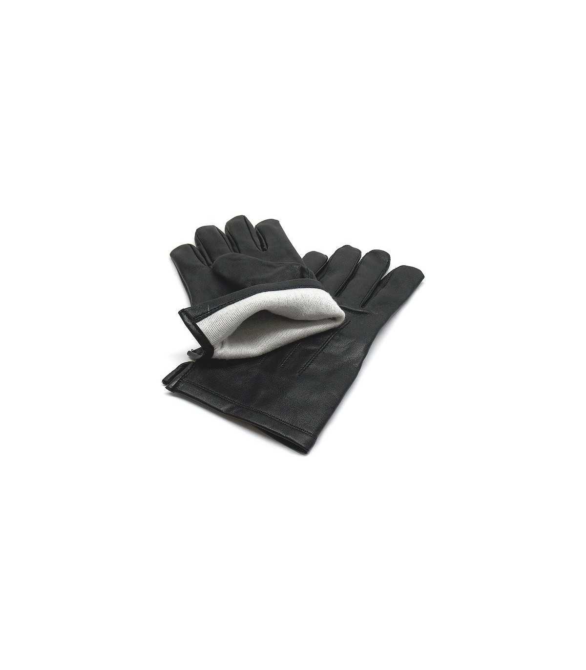 Guanti in pelle bovina nera di prima scelta con cuciture a riporto, foderati con leggera lanina cotonata bianca