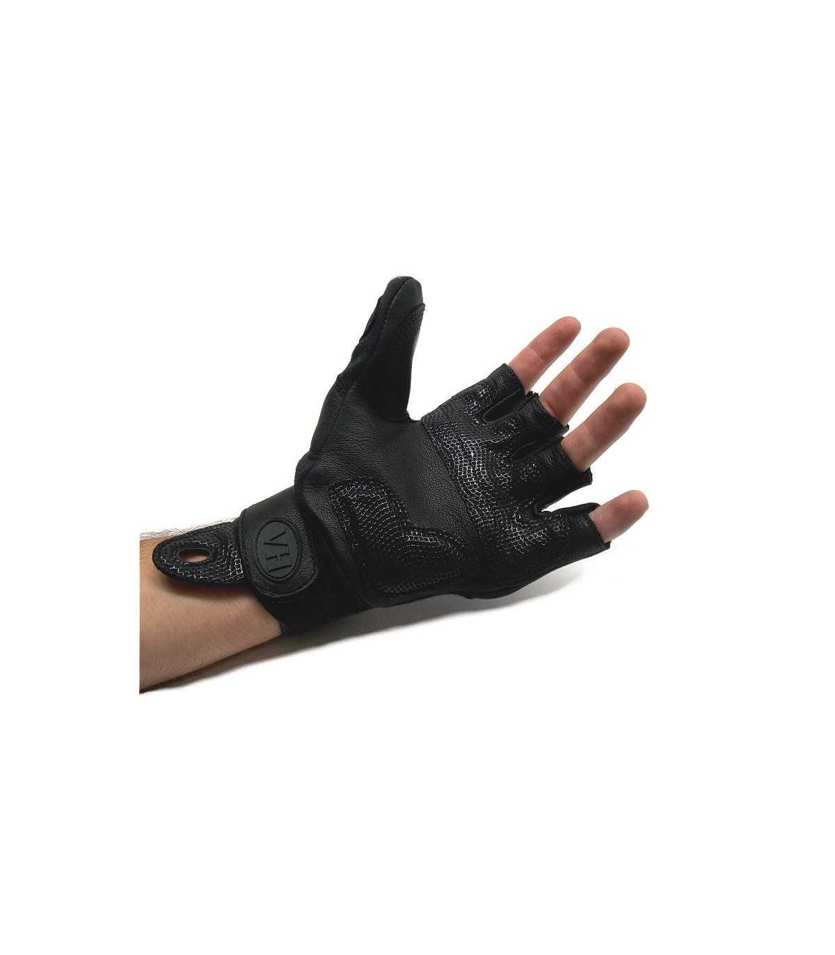 Rinforzo sul palmo in pelle improntata con gomma antiscivolo per una maggiore aderenza sull’arma o sull’oggetto impugnato