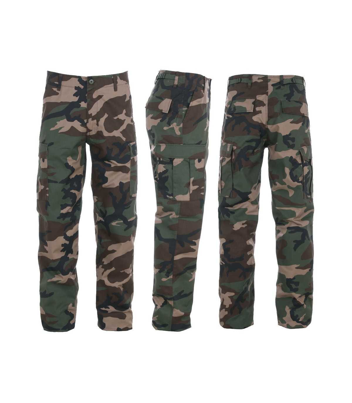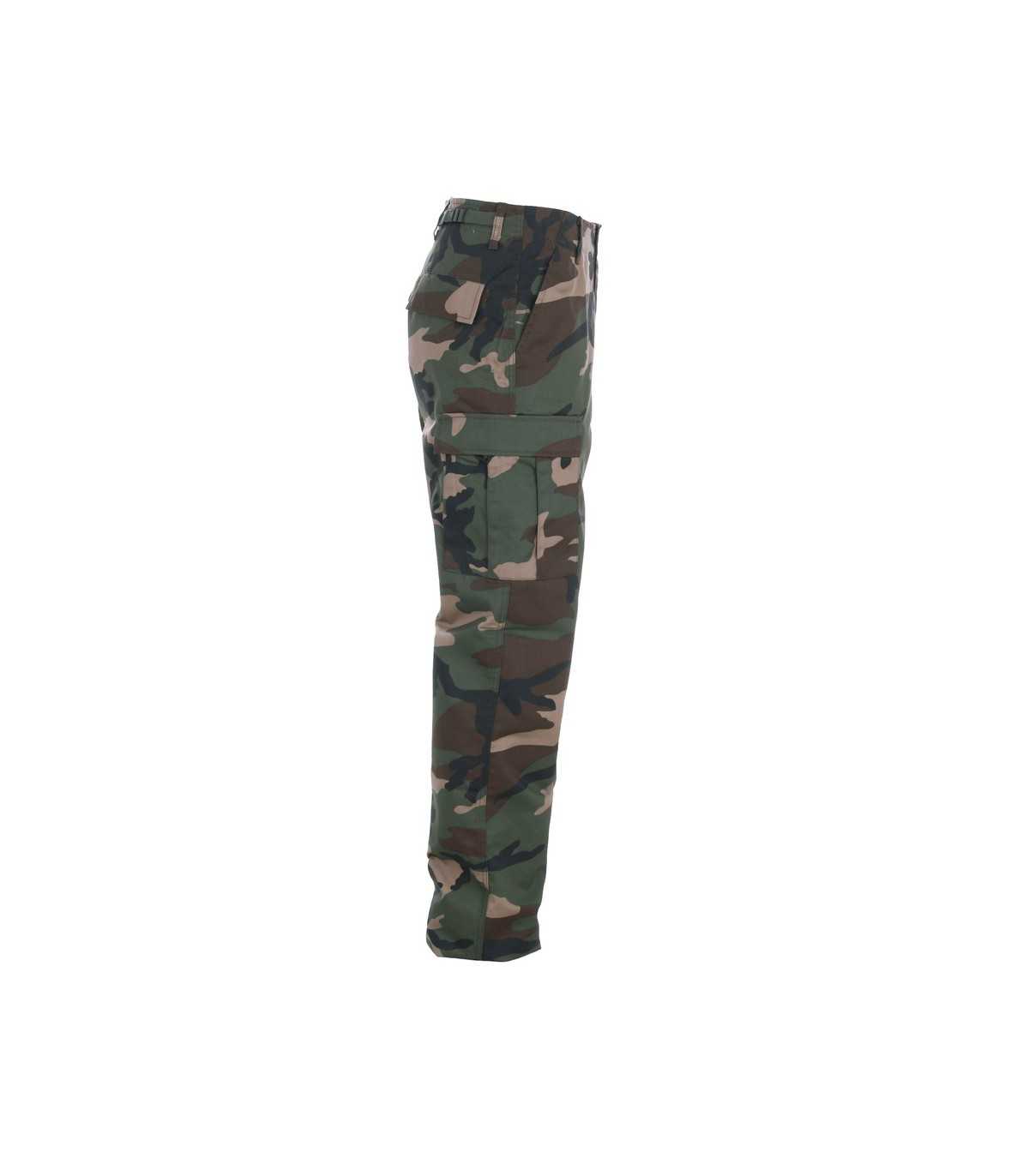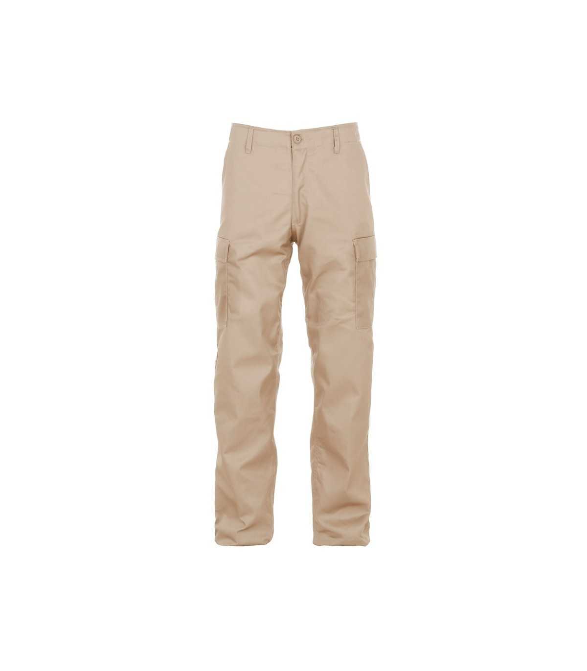 Pantalone BDU realizzato in materiale rip-stop, 65% poliestere e 35% cotone.