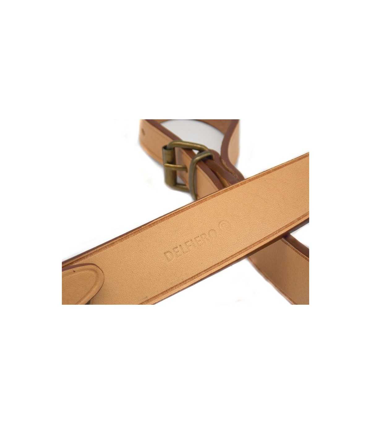 Bretella in vacchetta naturale conciata al vegetale,molata lateralmente per un maggior comfort, la particolare lavorazione di questa pelle utilizzata in questa bretella permette alla stessa di mantenersi senza cedere od allungarsi nel tempo