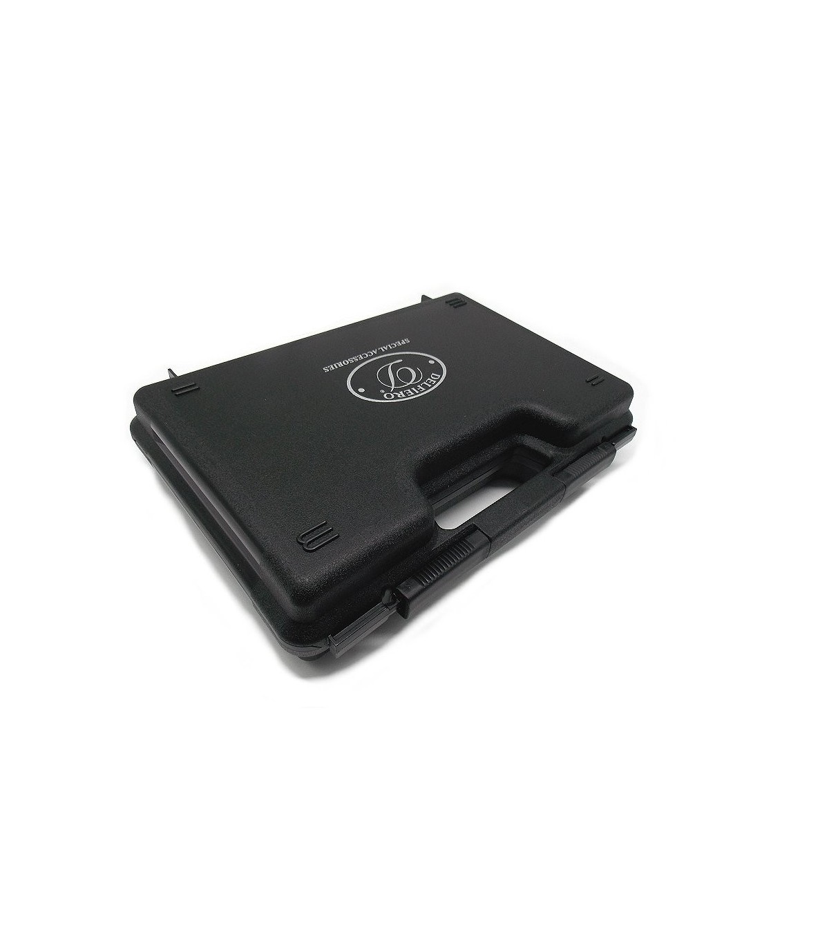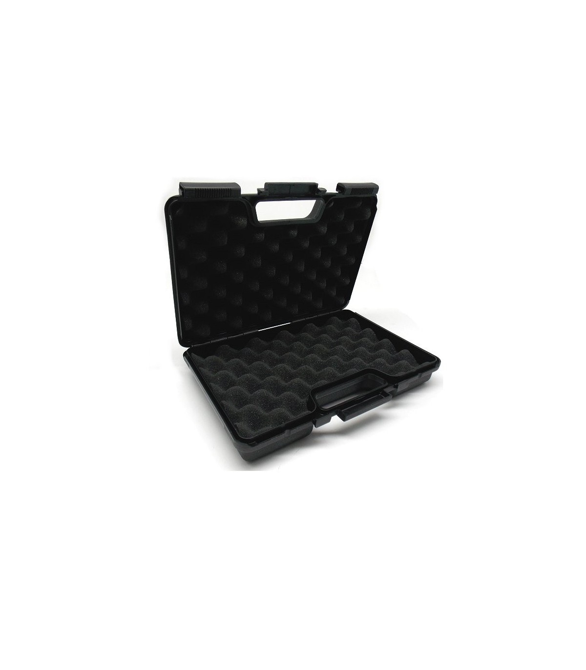 Valigetta porta pistola in plastica nera senza combinazione, chiusura a binario e foro per inserimento lucchetto opzionale di chiusura, con imbottitura in gomma piuma all interno