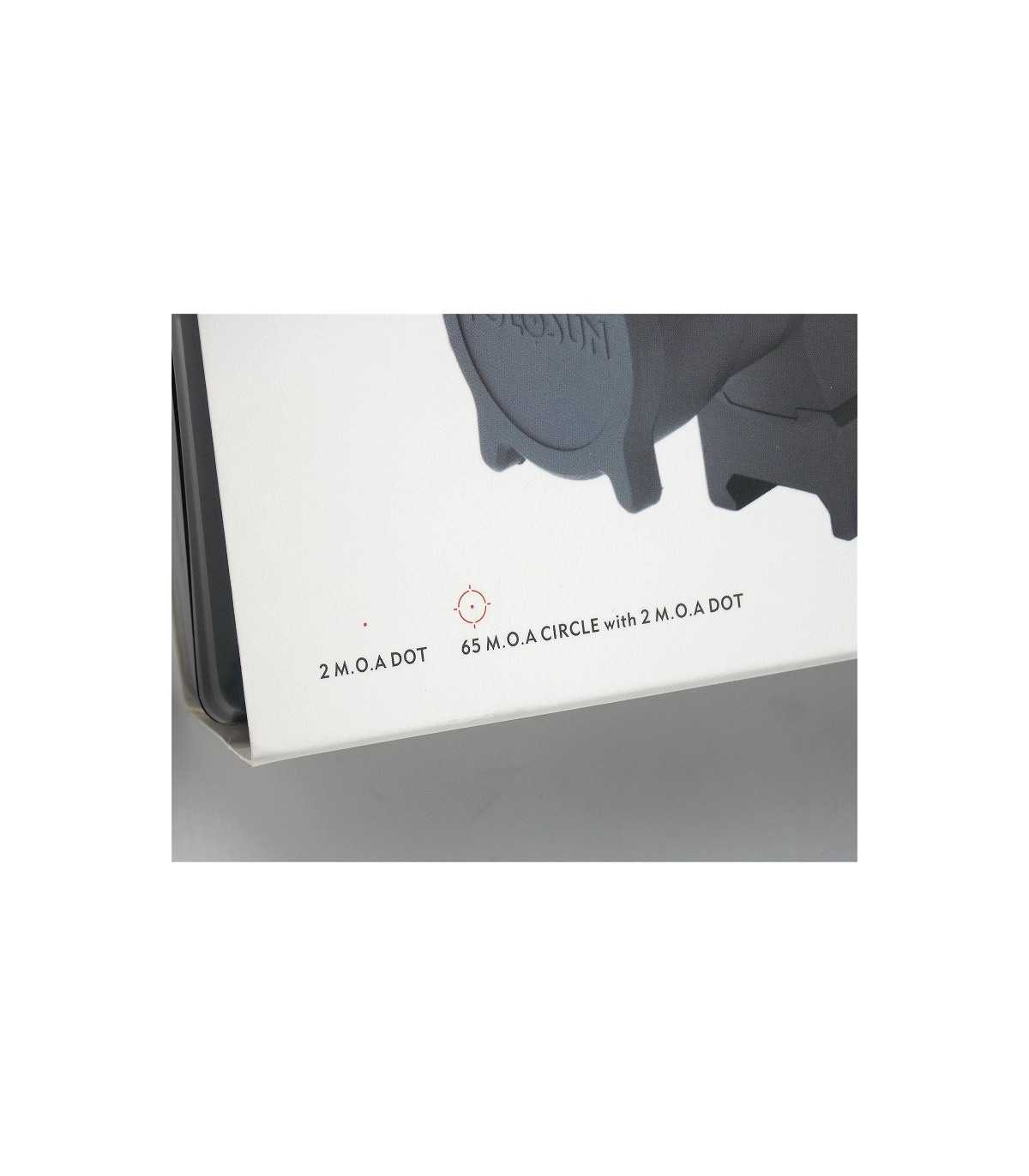 Punto rosso in alluminio nero opaco, con doppia scelta di reticolo tra 2MOA e circle dot 65MOA