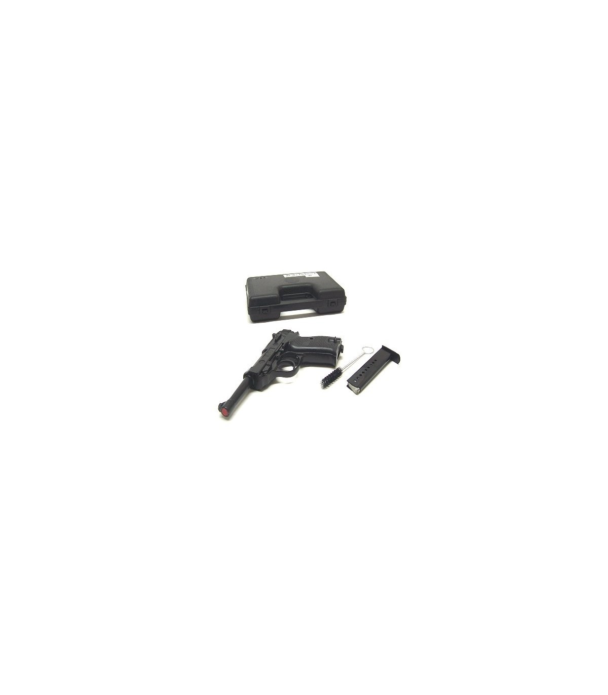 Strumento dissuasore a segnalazione acustica riproducente pistola in lega di zinco, peso 2500 g, lunghezza 21 cm da punta canna a punta a punta calcio in linea retta, altezza massima 14 cm