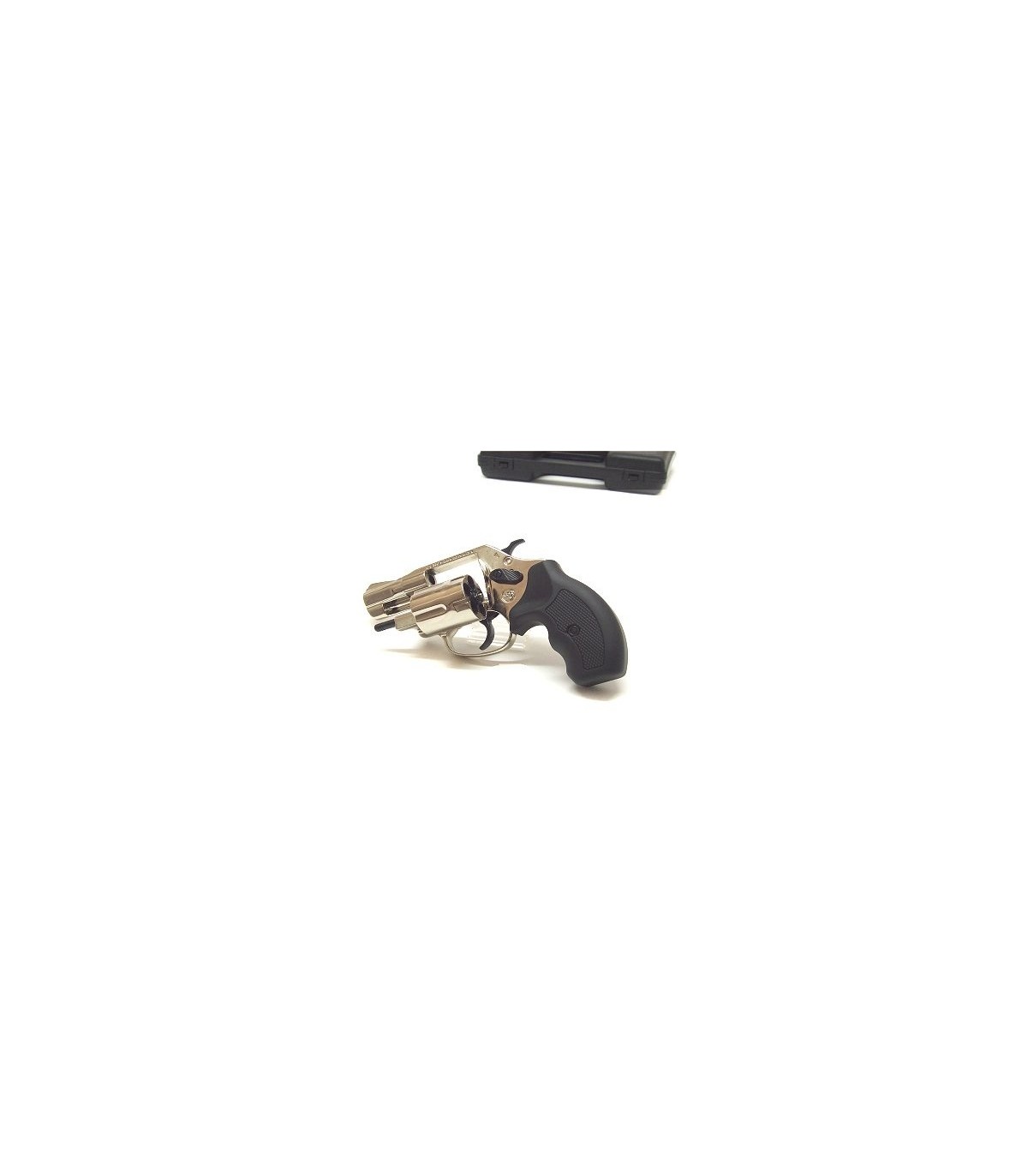 Strumento dissuasore a segnalazione acustica riproducente revolver a tamburo in lega di zinco con guancette in gomma, peso 565 g, lunghezza 16,5 cm, calibro 380