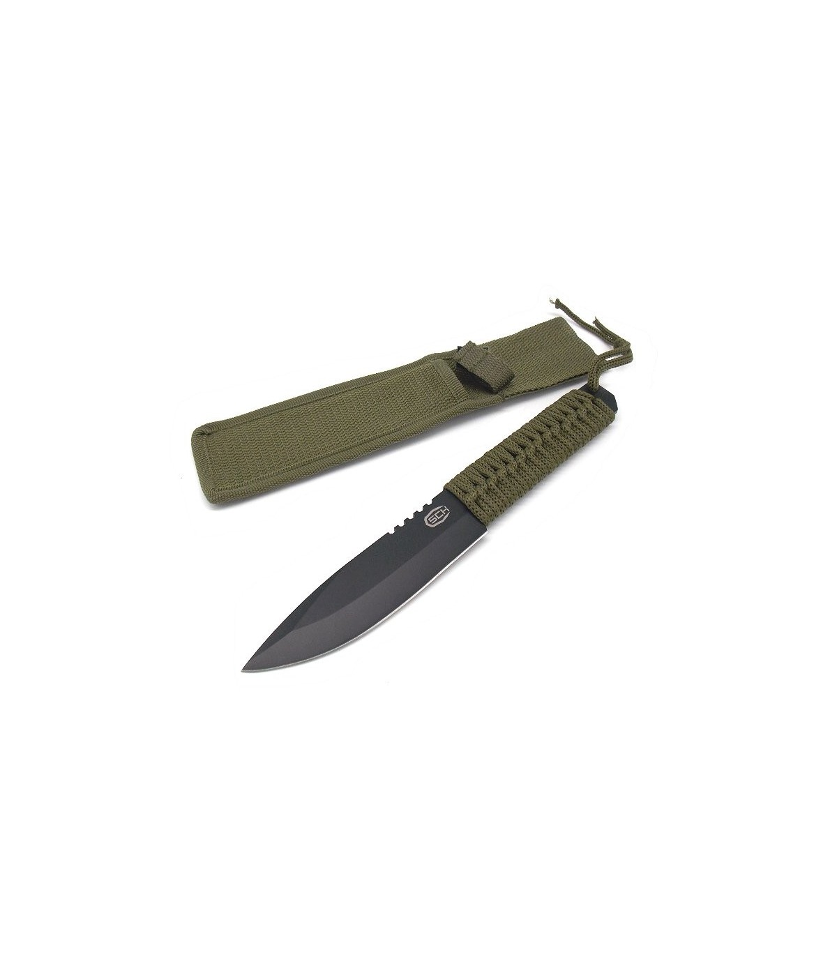 Dotato di fodero in tela verde con passante per cinturoni.
