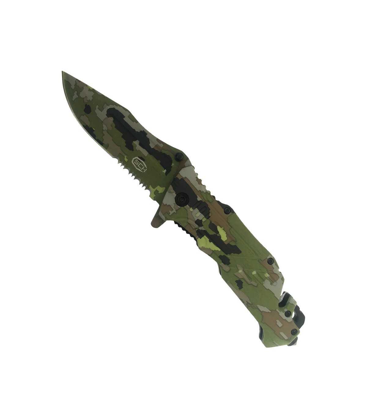 Coltello tattico richiudibile in colorazione camo.