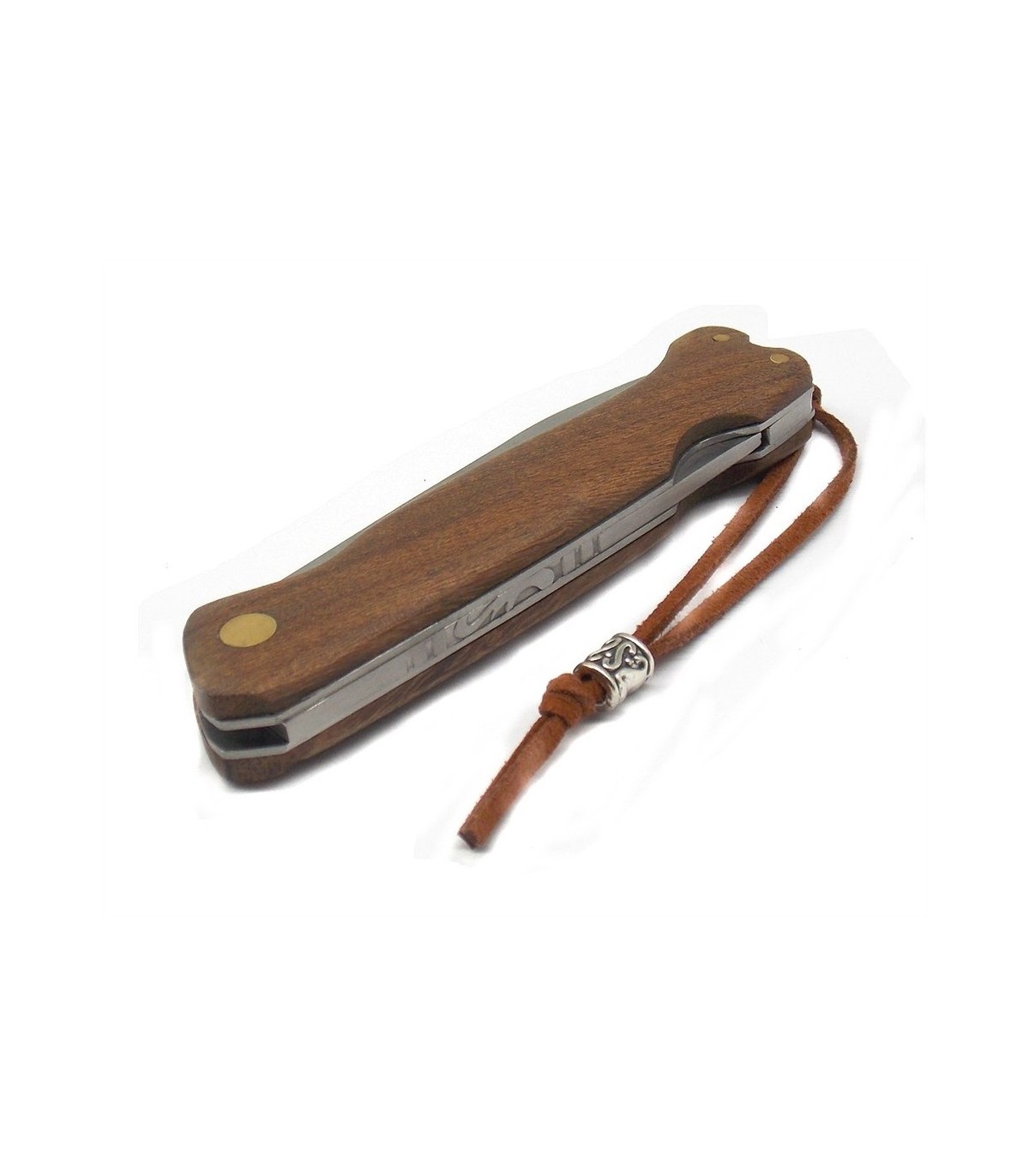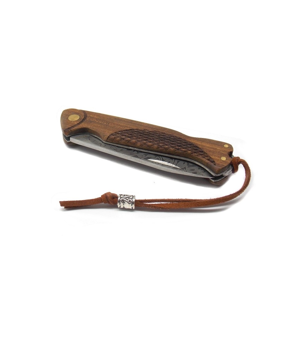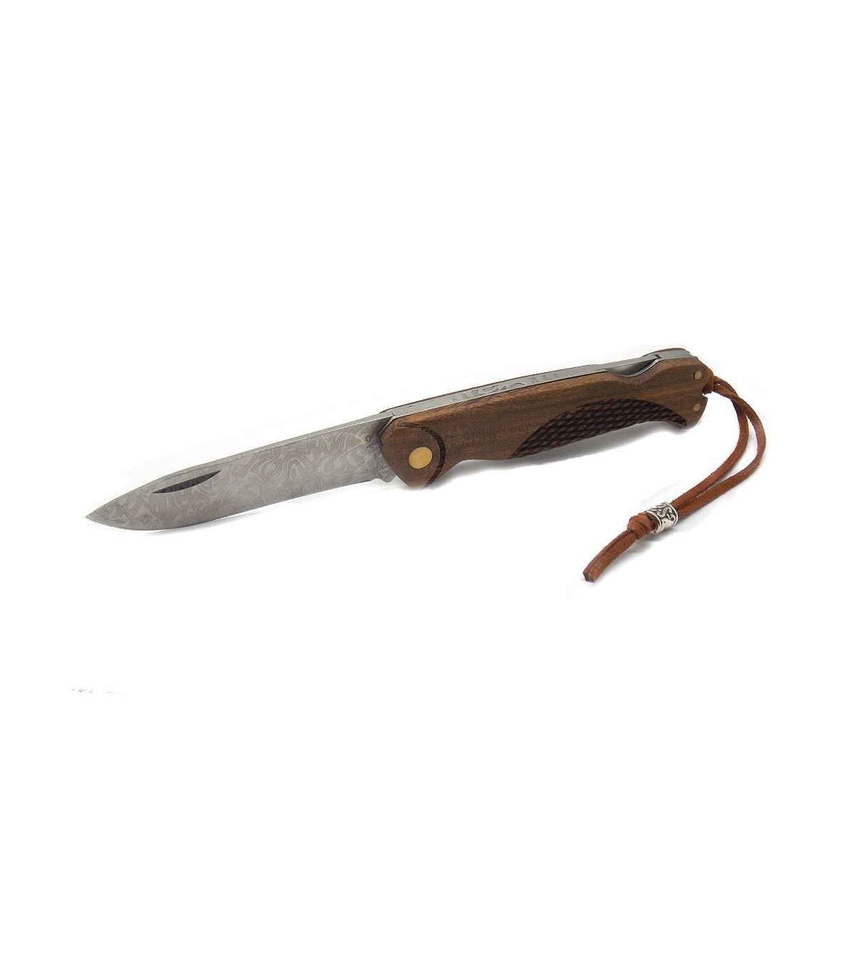 Lunghezza lama 7,5 cm, larghezza lama massima 1,8 cm, lunghezza totale aperto 18,5 cm.Lama damascata, manico in legno, dotato di blocco lama e di laccetto.
