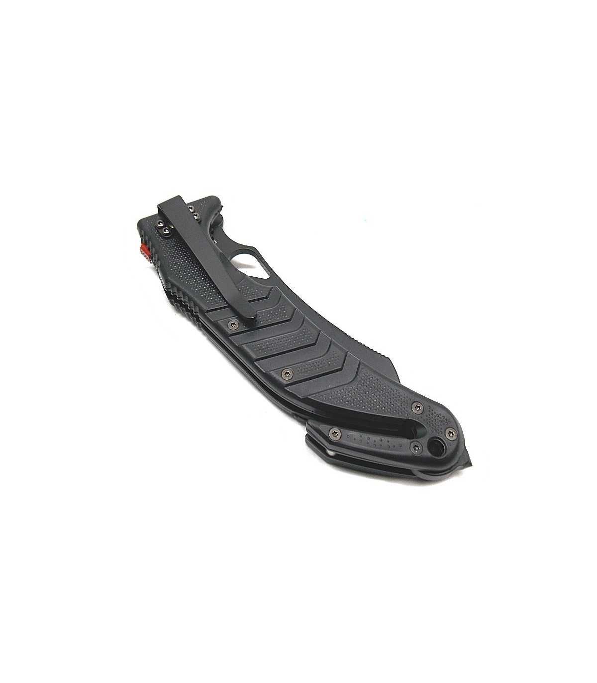 Dotato di una lama speciale per il taglio della cintura di sicurezza, di clip per metterlo al cinto e di un fodero