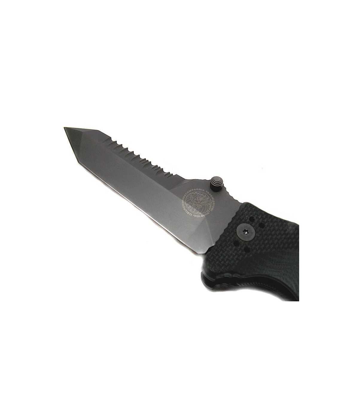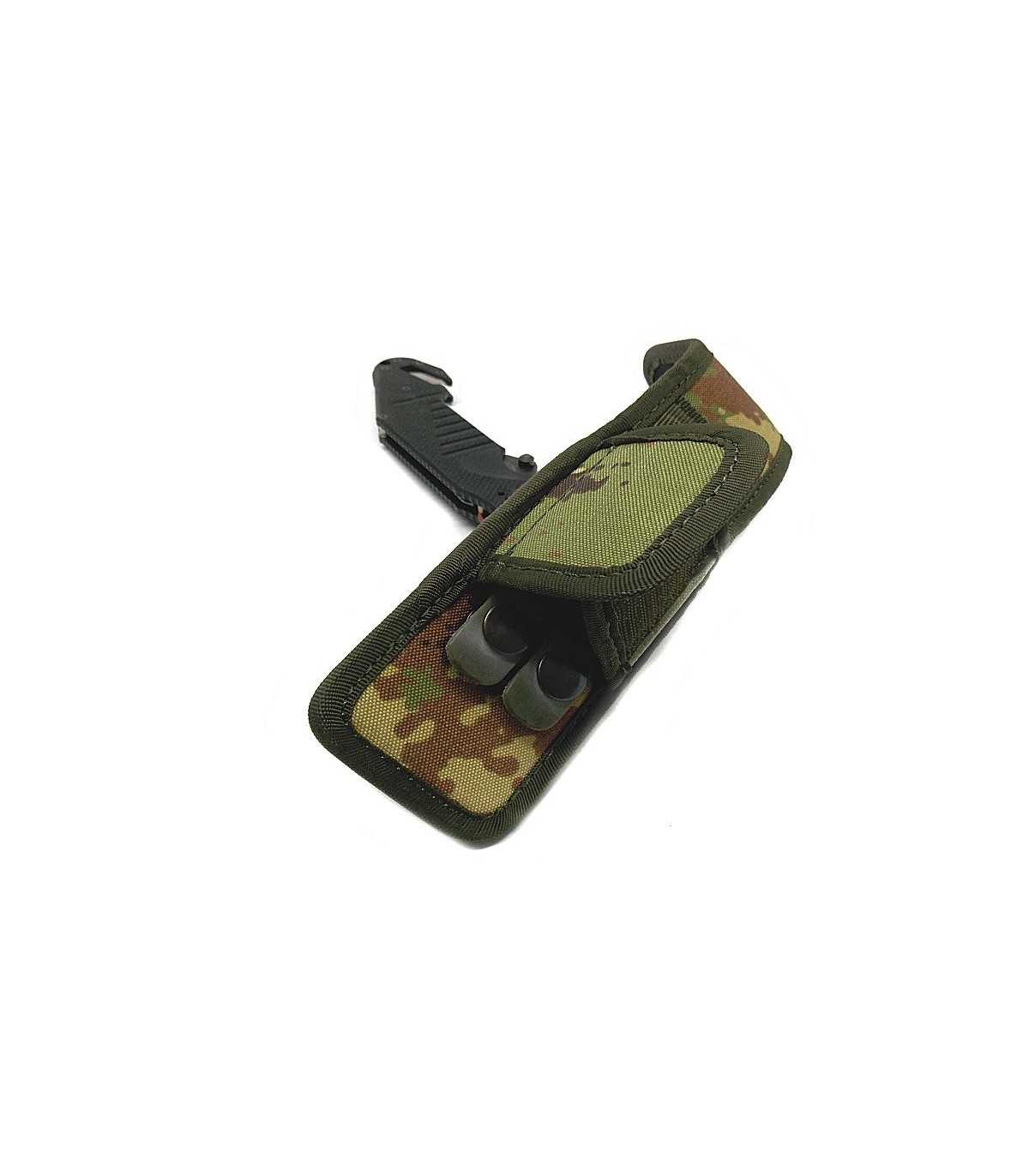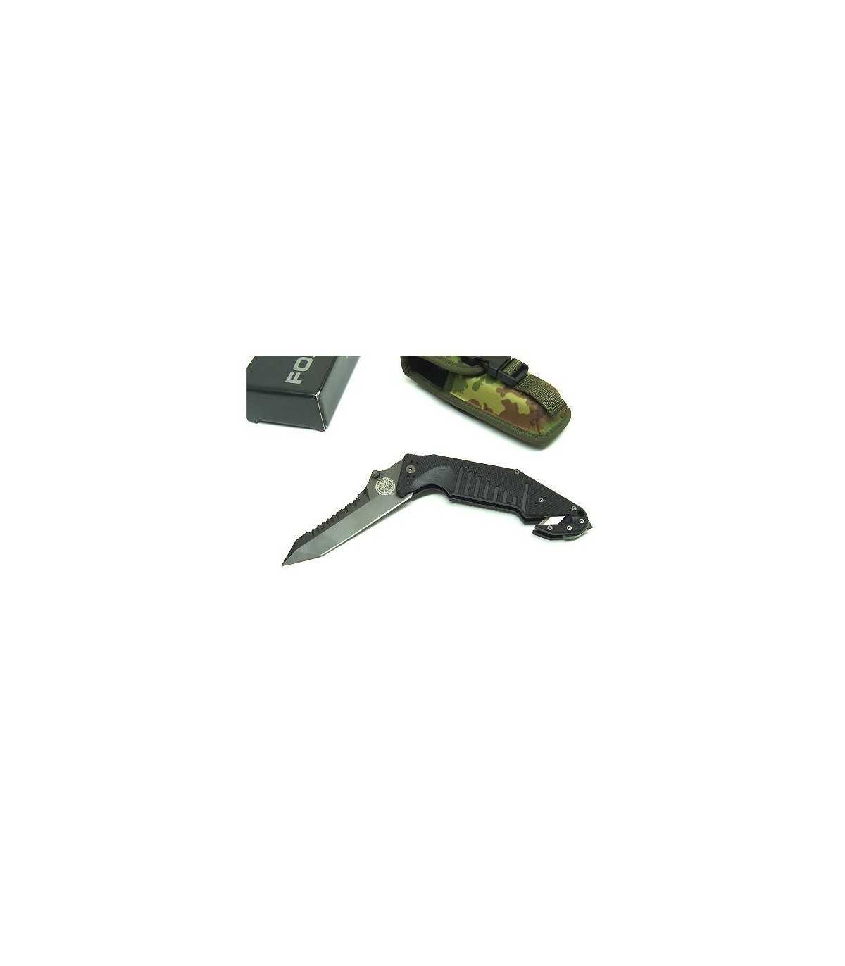 Dotato di rompivetro, tagliacintura, clip per metterlo al cinto, fodero in nylon, blocco lama