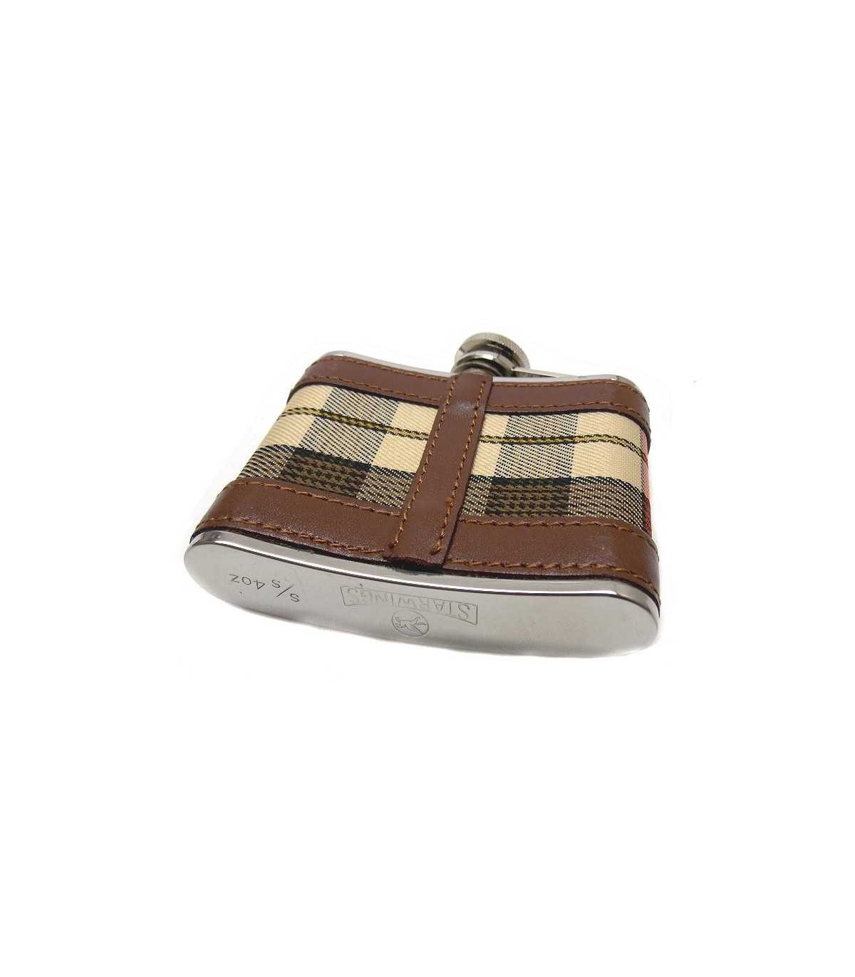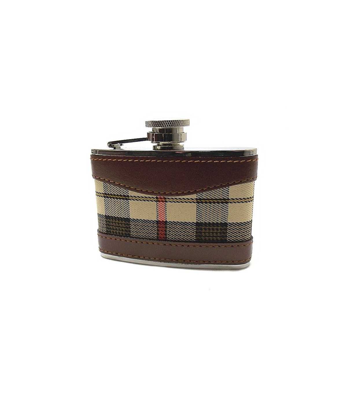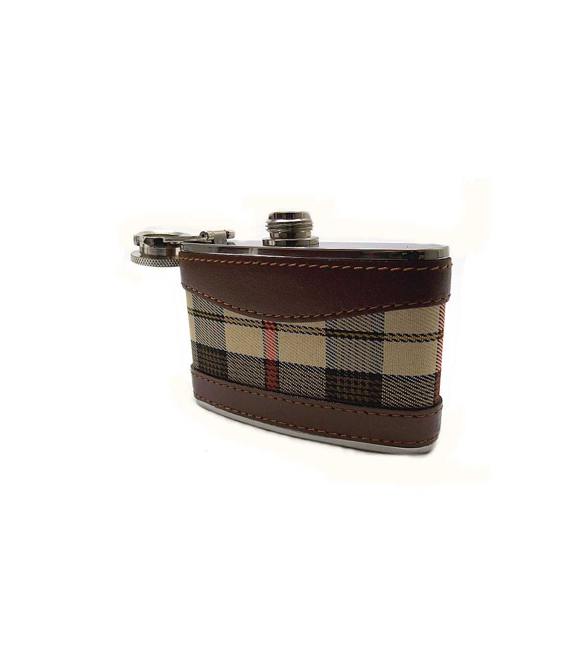 Fiaschetta in acciaio inox con rivestimento scozzese e cuoio