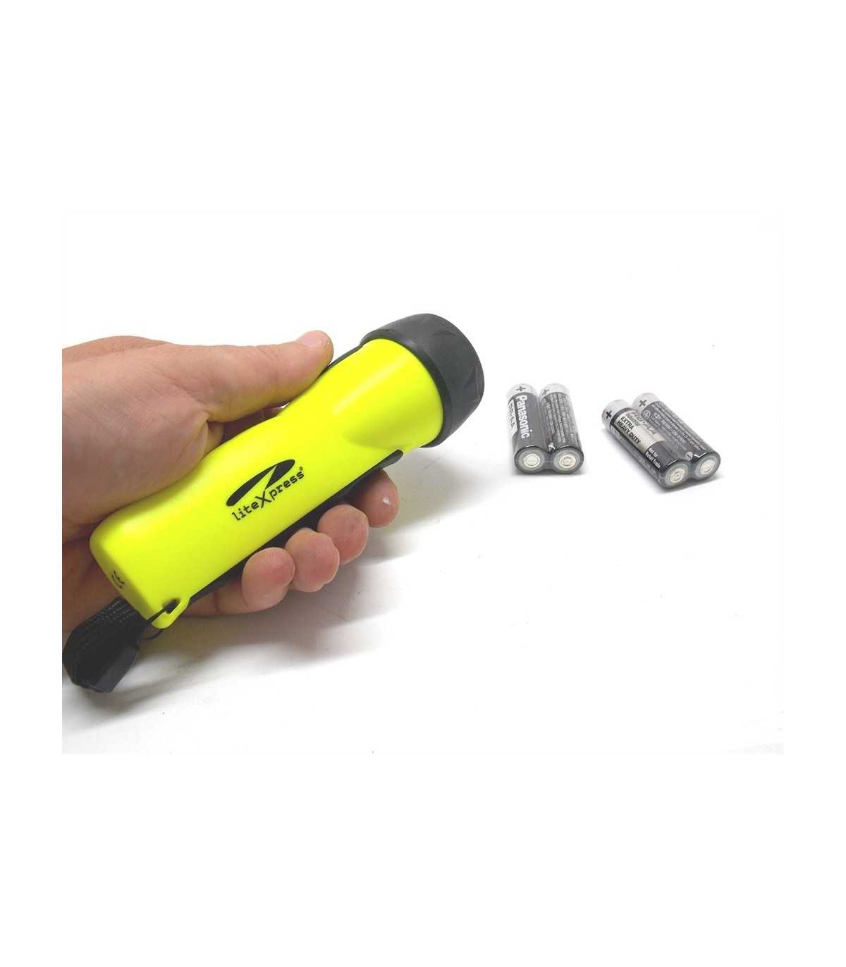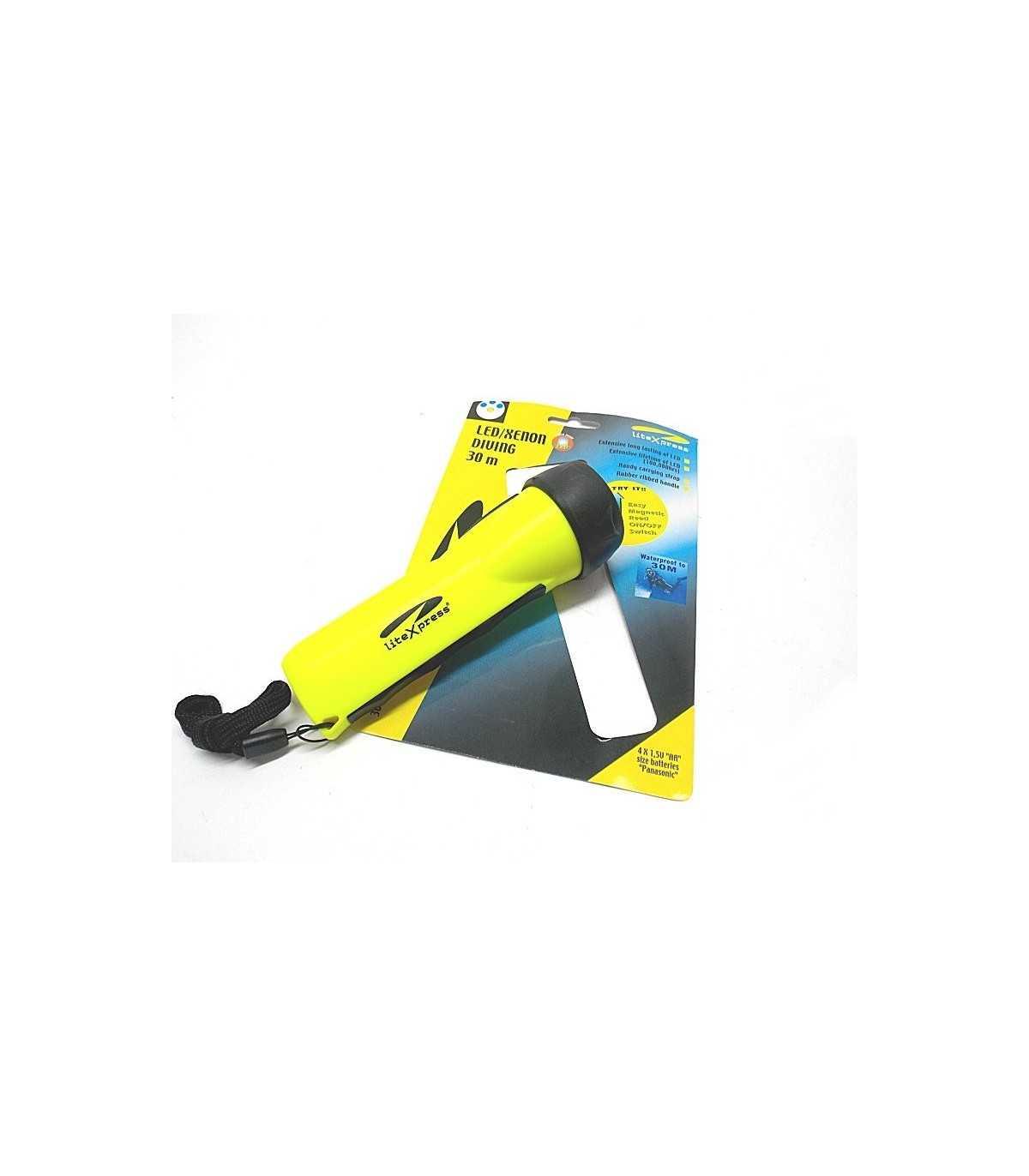 Torcia subacquea a 4 led e 1 lampada xenon, impugnatura ergonomica e antiscivolo, lacciolo per facilitare la presa