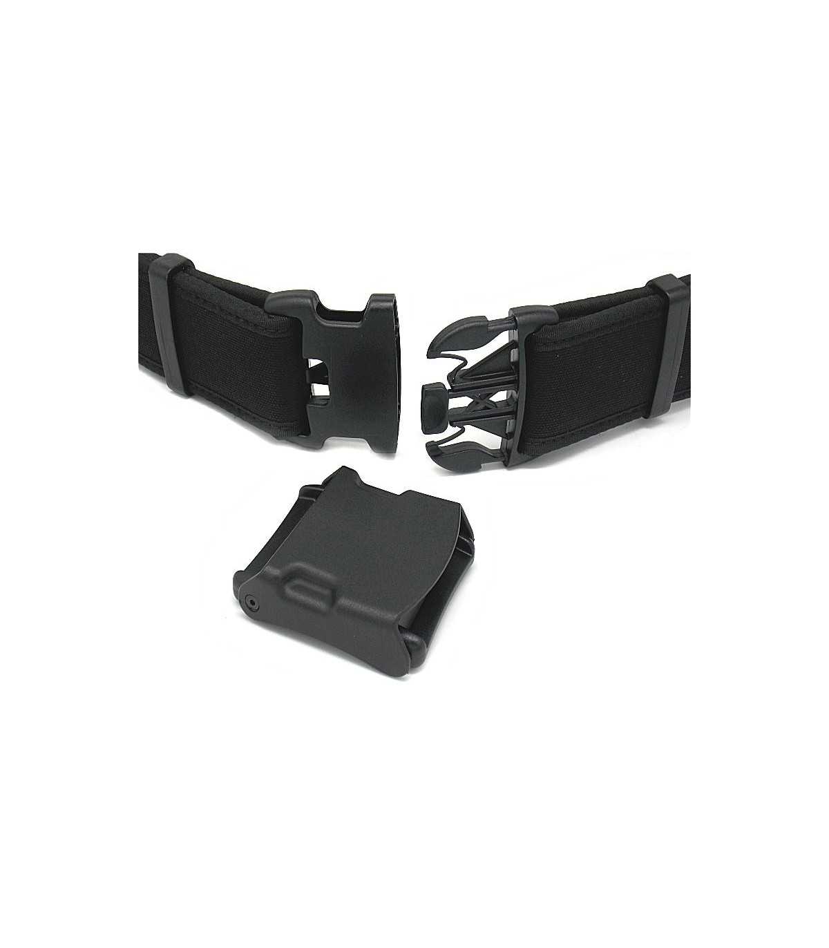 Fibbia Radar in polimero a scatto con blocco a tre punte e coprifibbia per cinturone da 5 cm