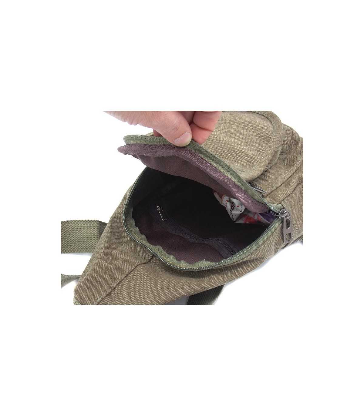 Dotato di un ampio scomparto centrale con tasca interna, di un uno scomparto più piccolo con chiusura con pattina, la quale ha una tasca con cerniera