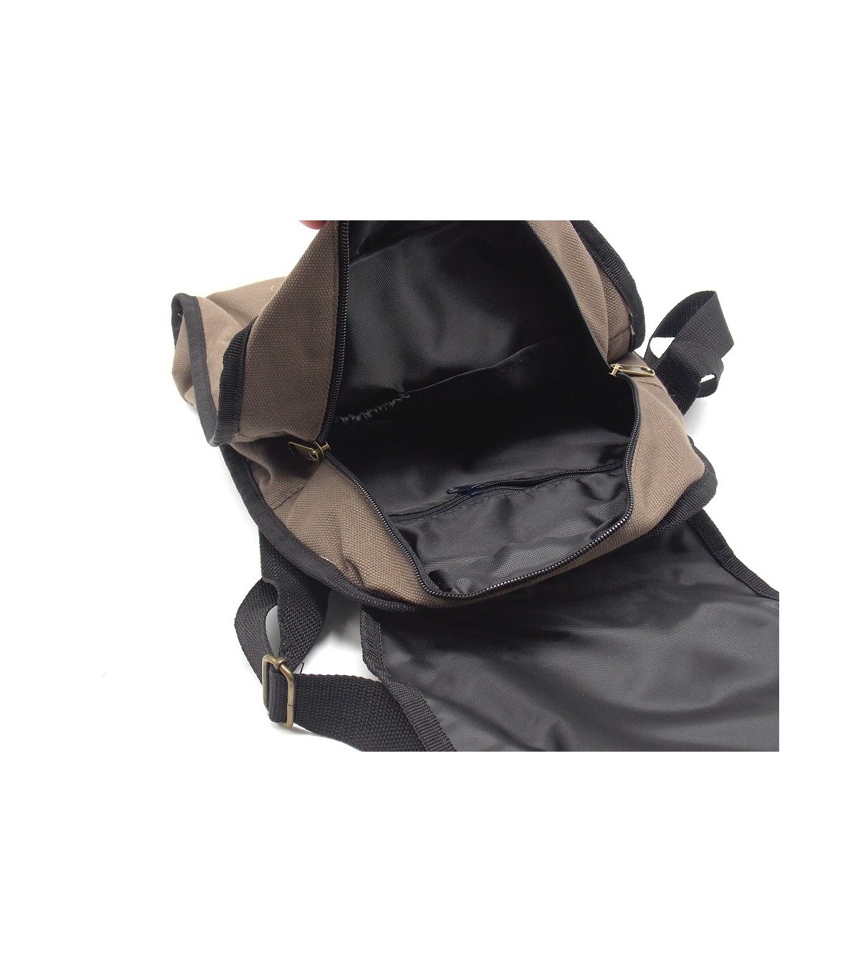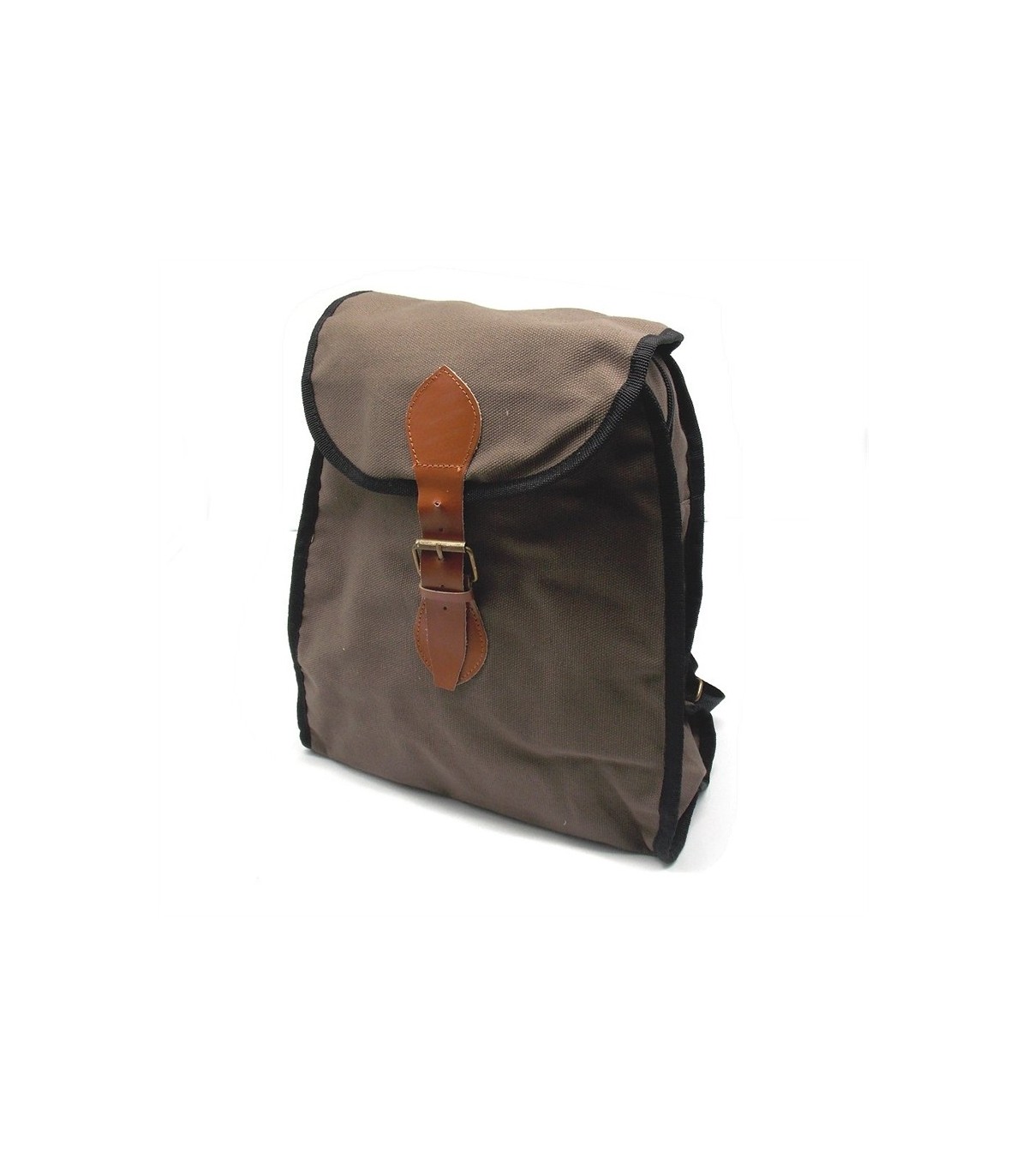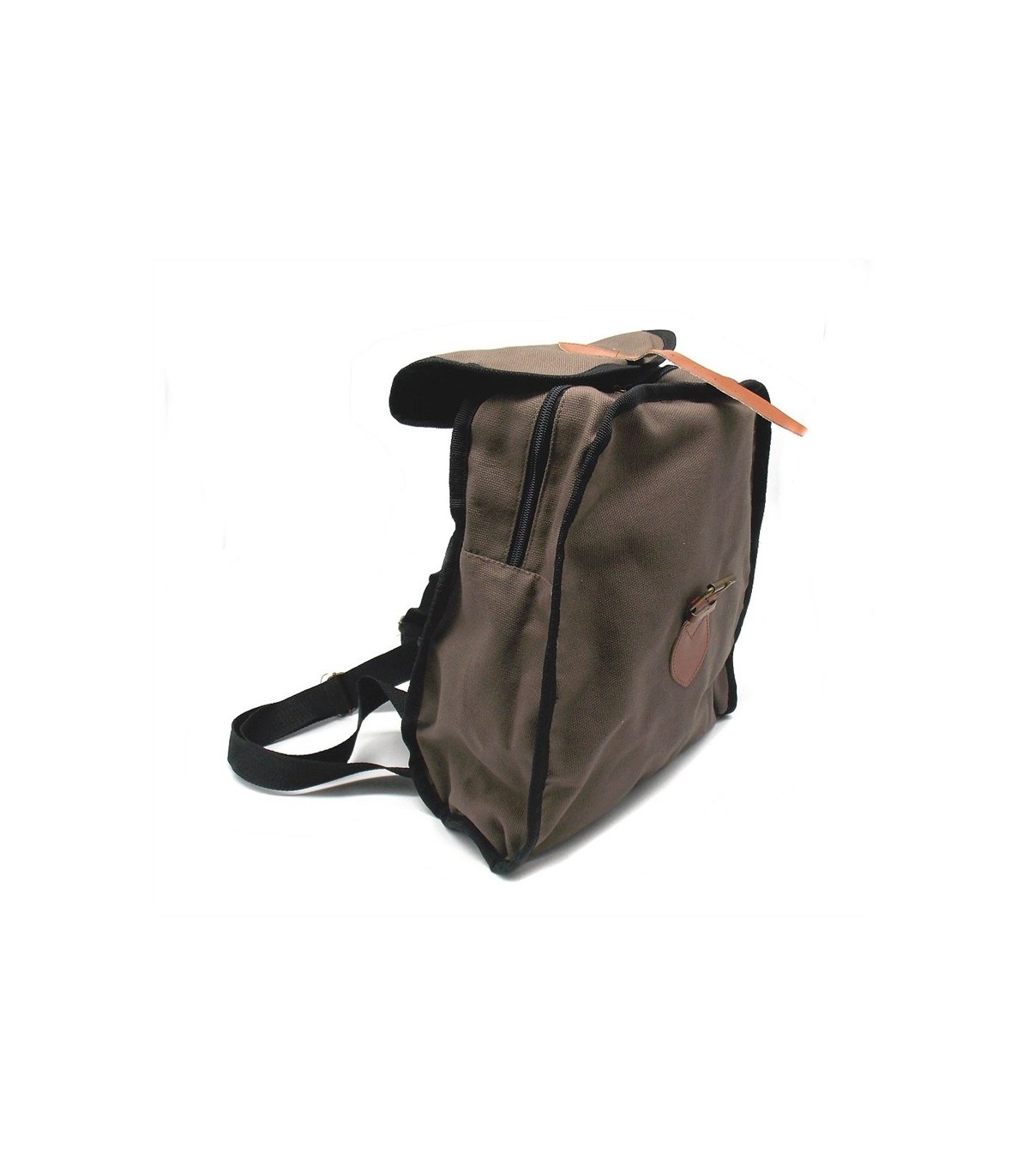 Zainetto in tessuto canvas marrone foderato all'interno con 2 tasche interne, taschino porta cellulare