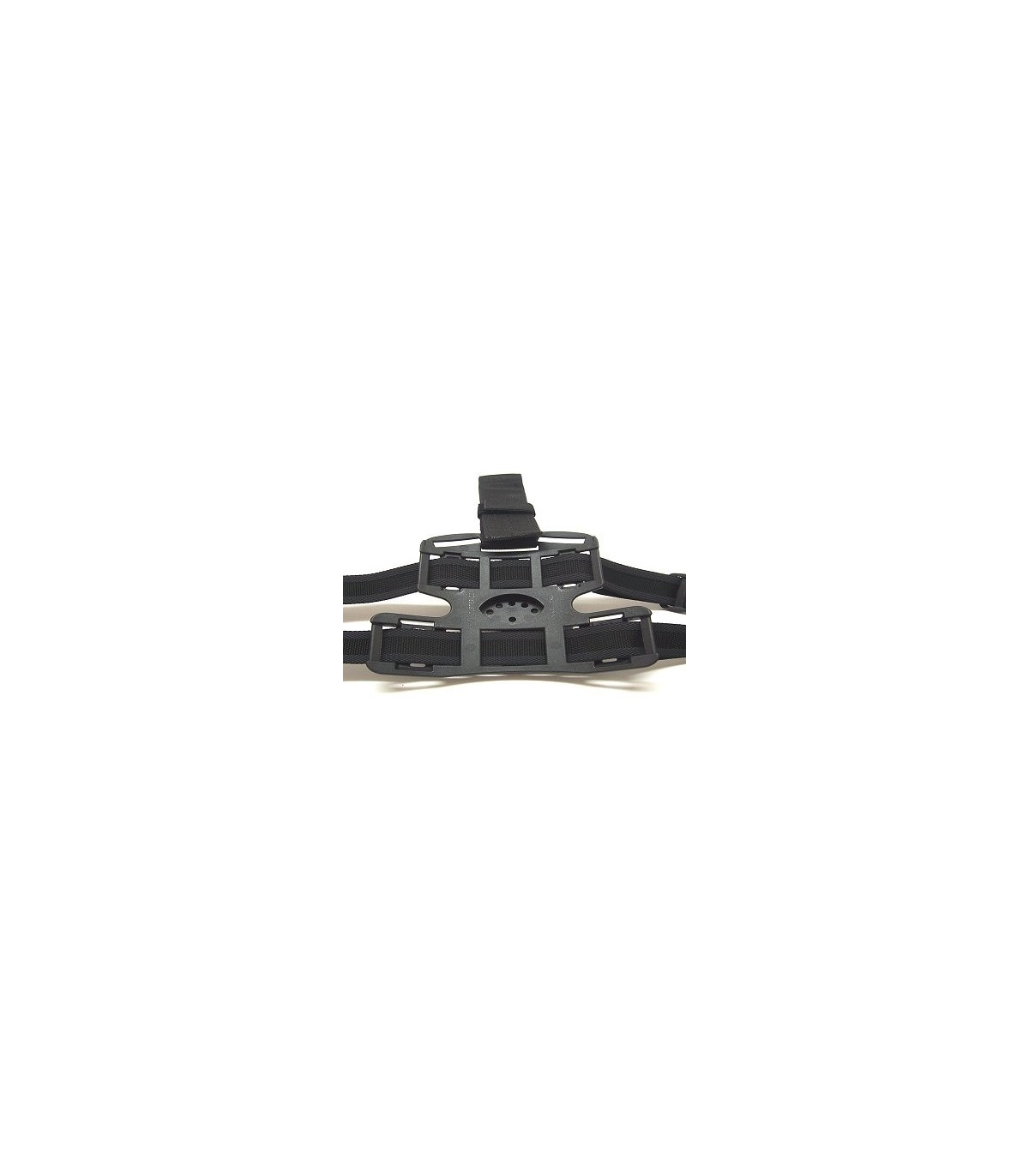Dotato di doppie fasce con binari antiscivolo per ancoraggio alla coscia e singola asola cosciale regolabile con velcro.