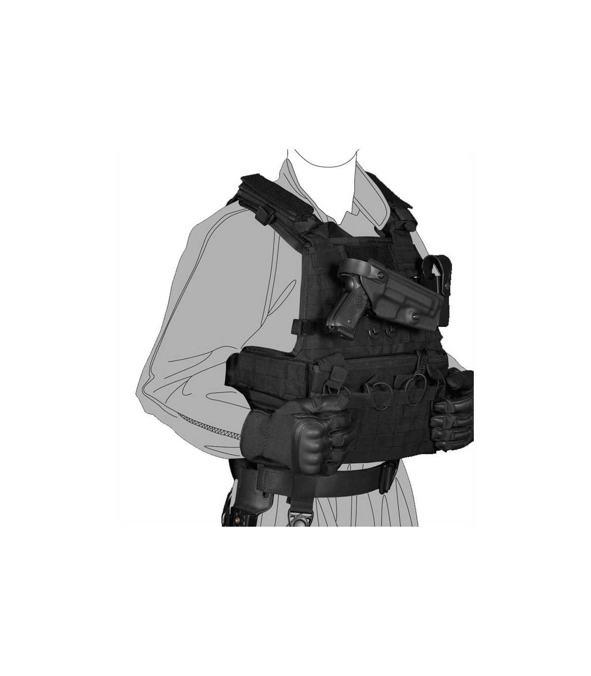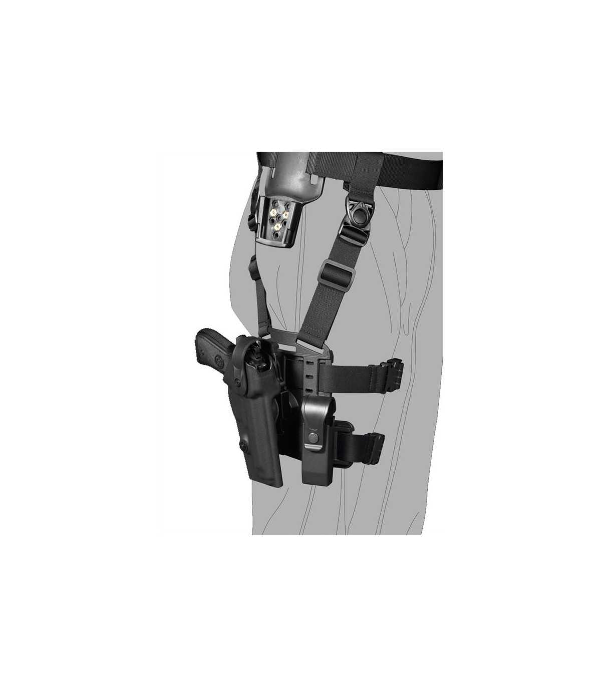 È un sistema che permette l’inserimento e il disinserimento della fondina da un sistema passante fissato in cintura, da una piattaforma cosciale e da una piattaforma per molle.