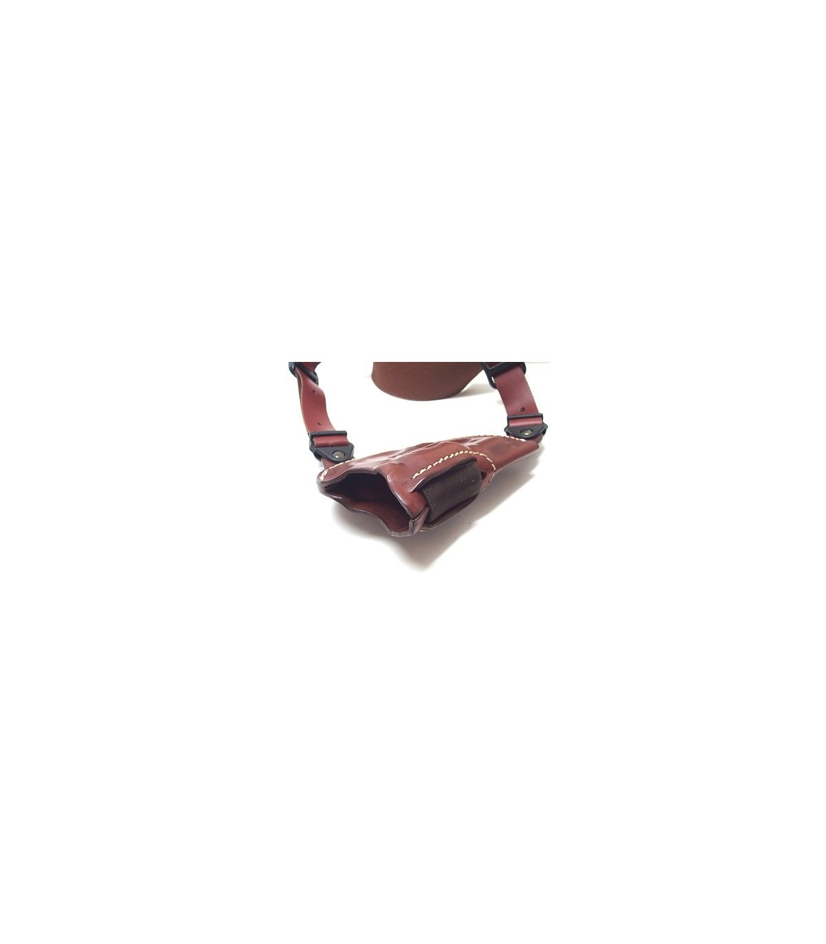 Fondina ascellare aperta capovolta in cuoio con ritenzione ad elastico.