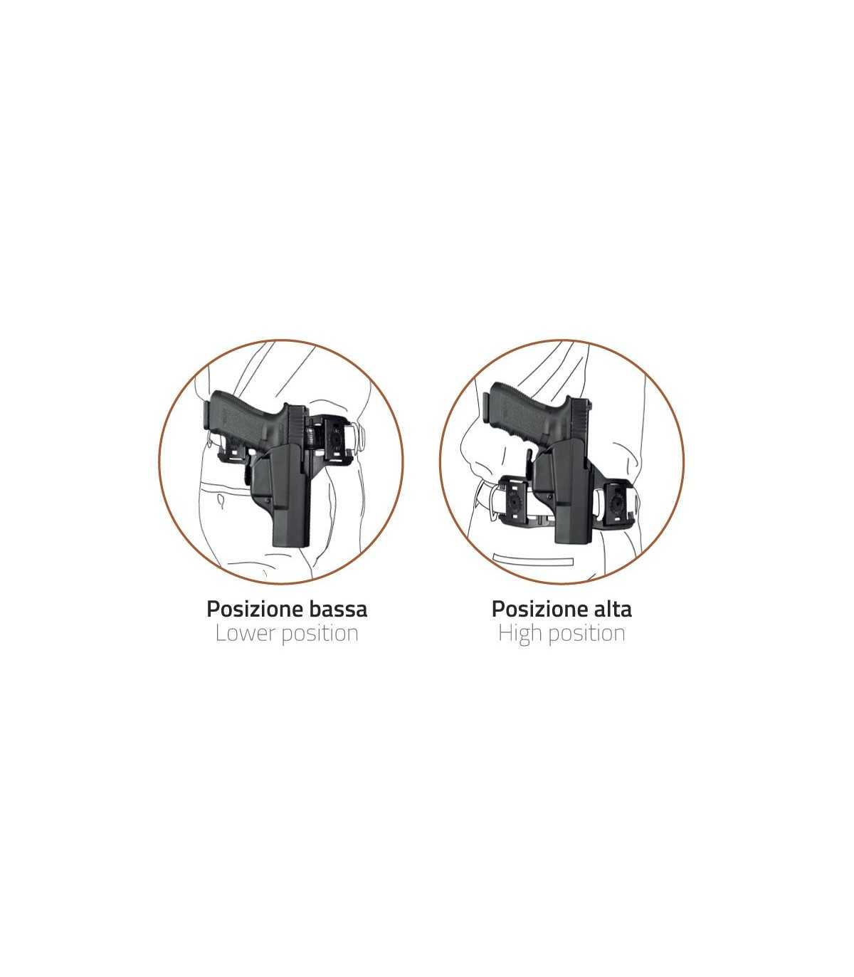 Doppia possibilità di porto: ALTO semi-ascellare o BASSO sotto il fianco.