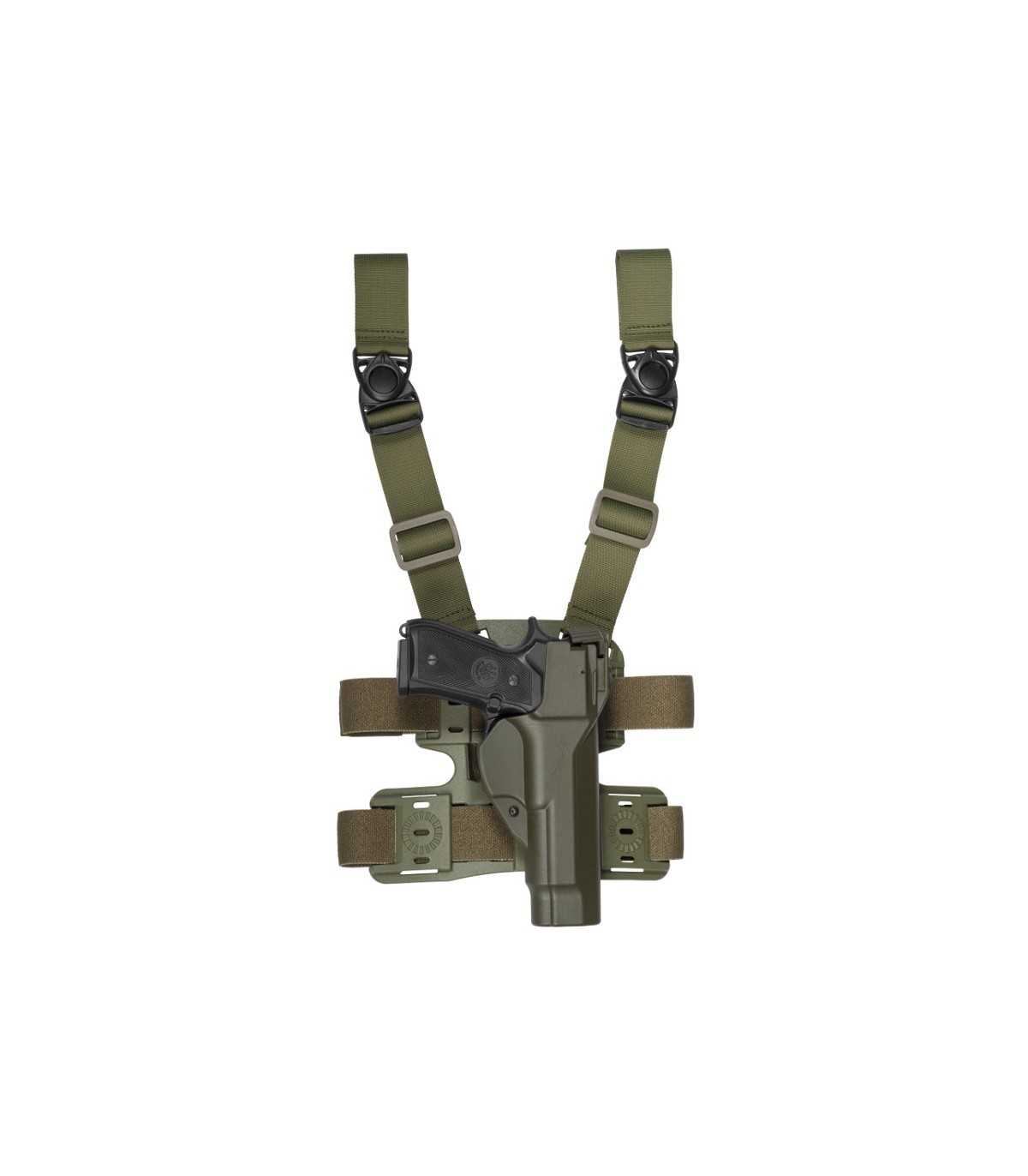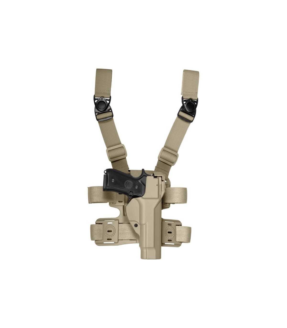La fondina è montata su un kit cosciale stampato ad iniezione.