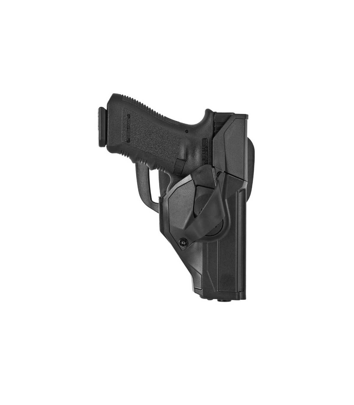 Passante per cinturone con doppia asola e altezza impugnatura sopra altezza cintura.