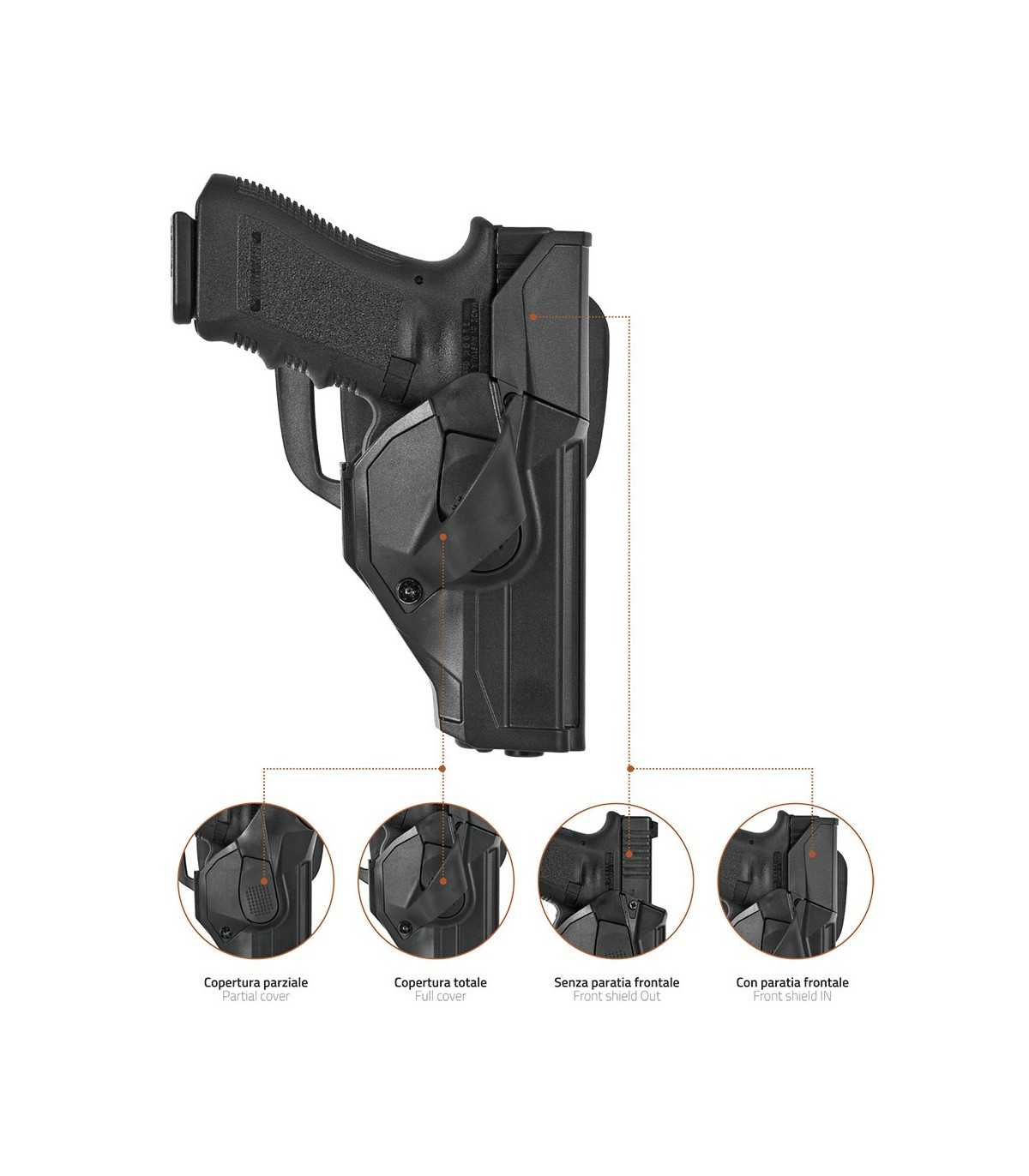 Possibilità di montaggio su tutti i passanti e kit Vega Holster.