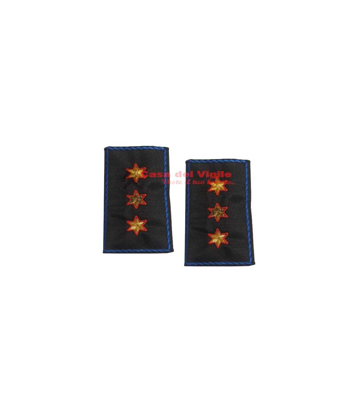 Tubolari ricamati con tre stelle a sei punte dorate bordate di rosso Polizia Locale Municipale Guardie Giurate