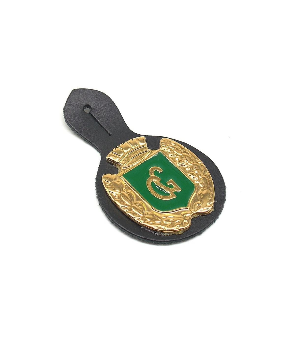 Placca in metallo fondo verde Guardia Giurata con pendif in pelle nera