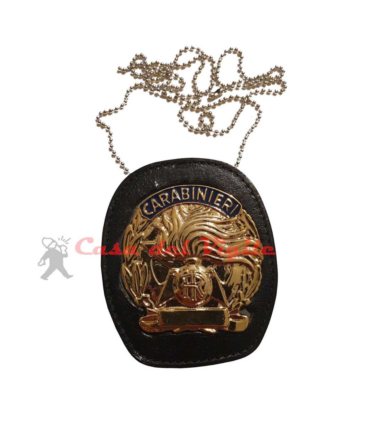 Porta placca in pelle da collo o cintura con placca Carabinieri