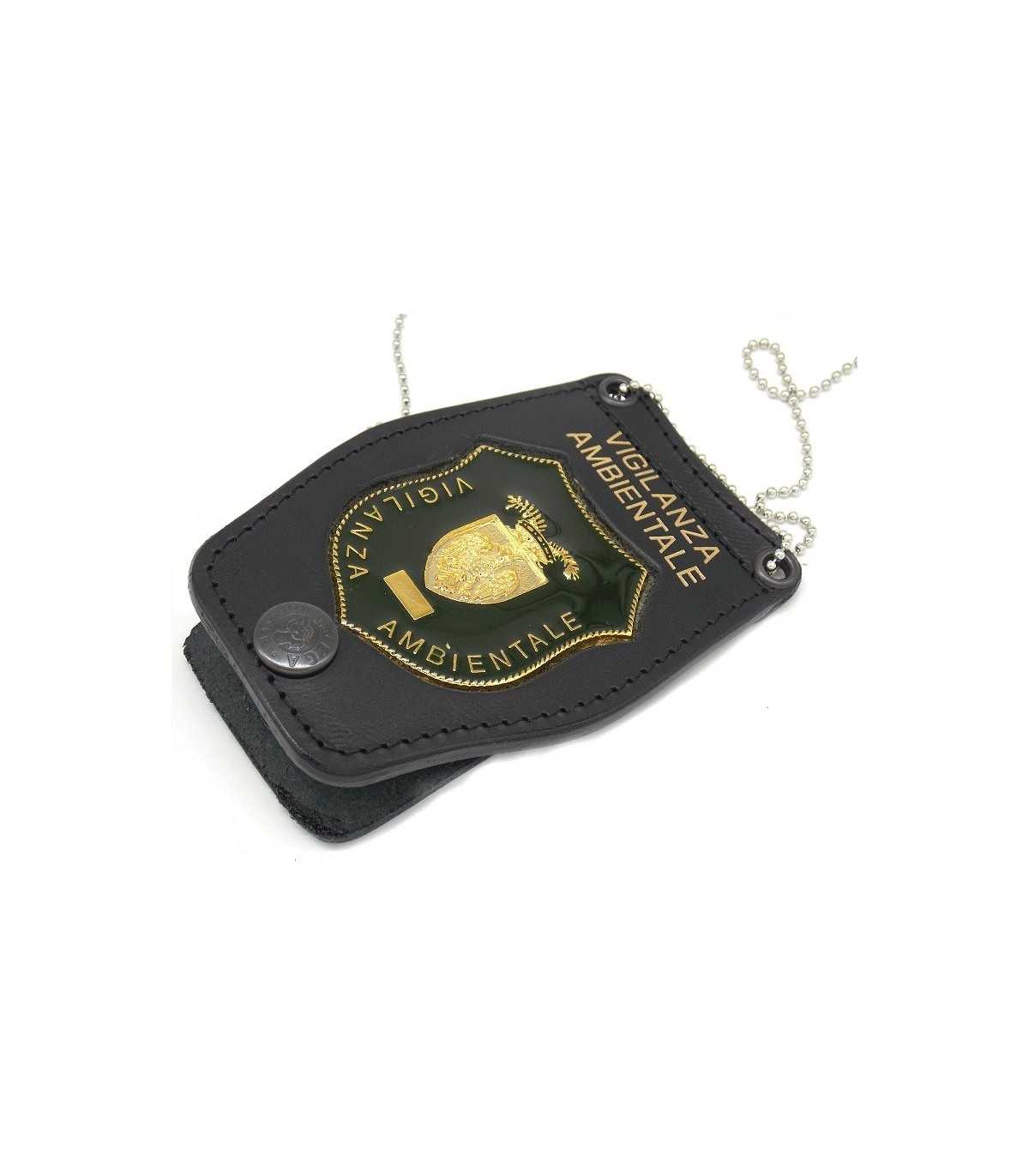 Porta placca in pelle da collo e cintura con placca Vigilanza Ambientale