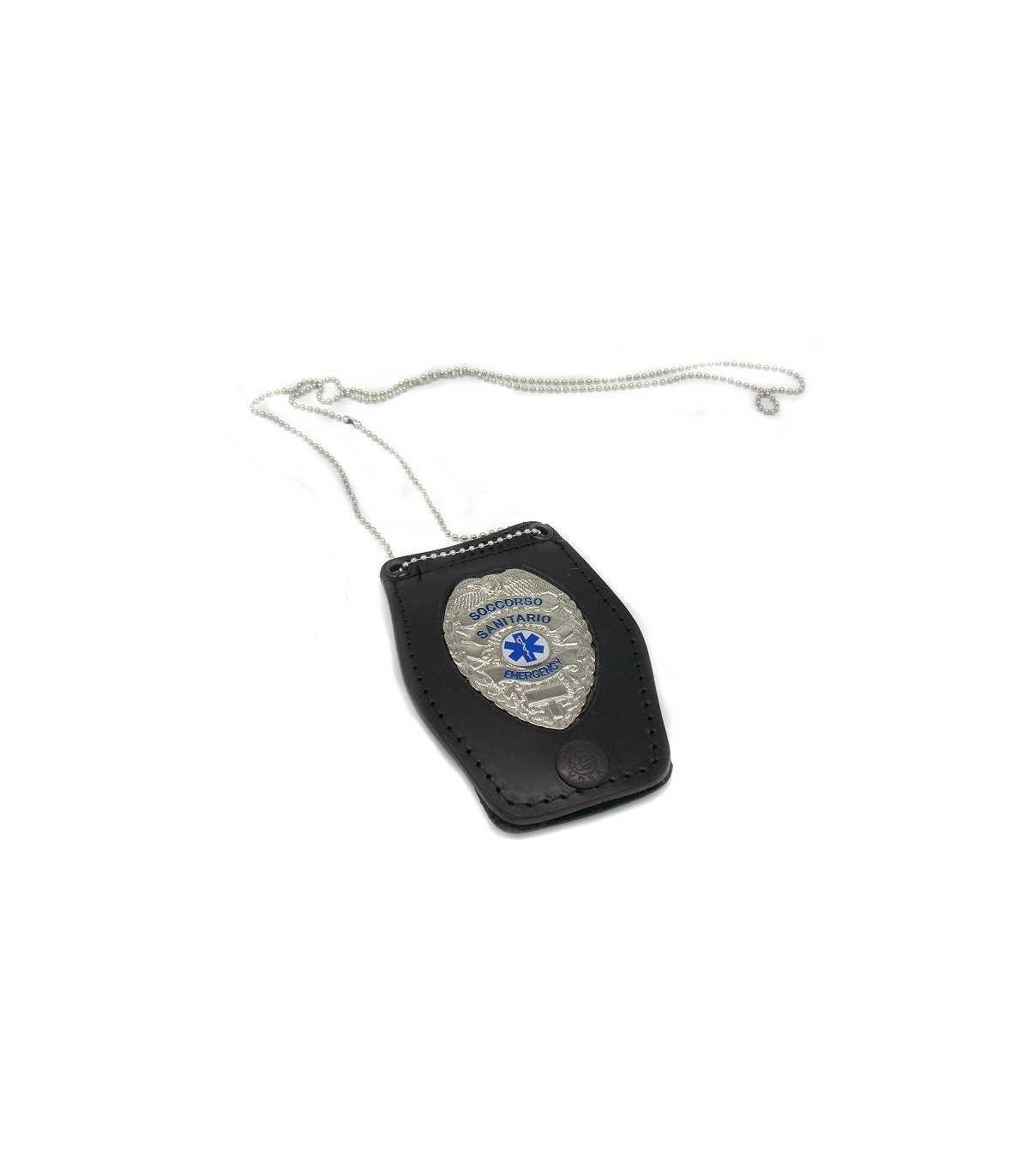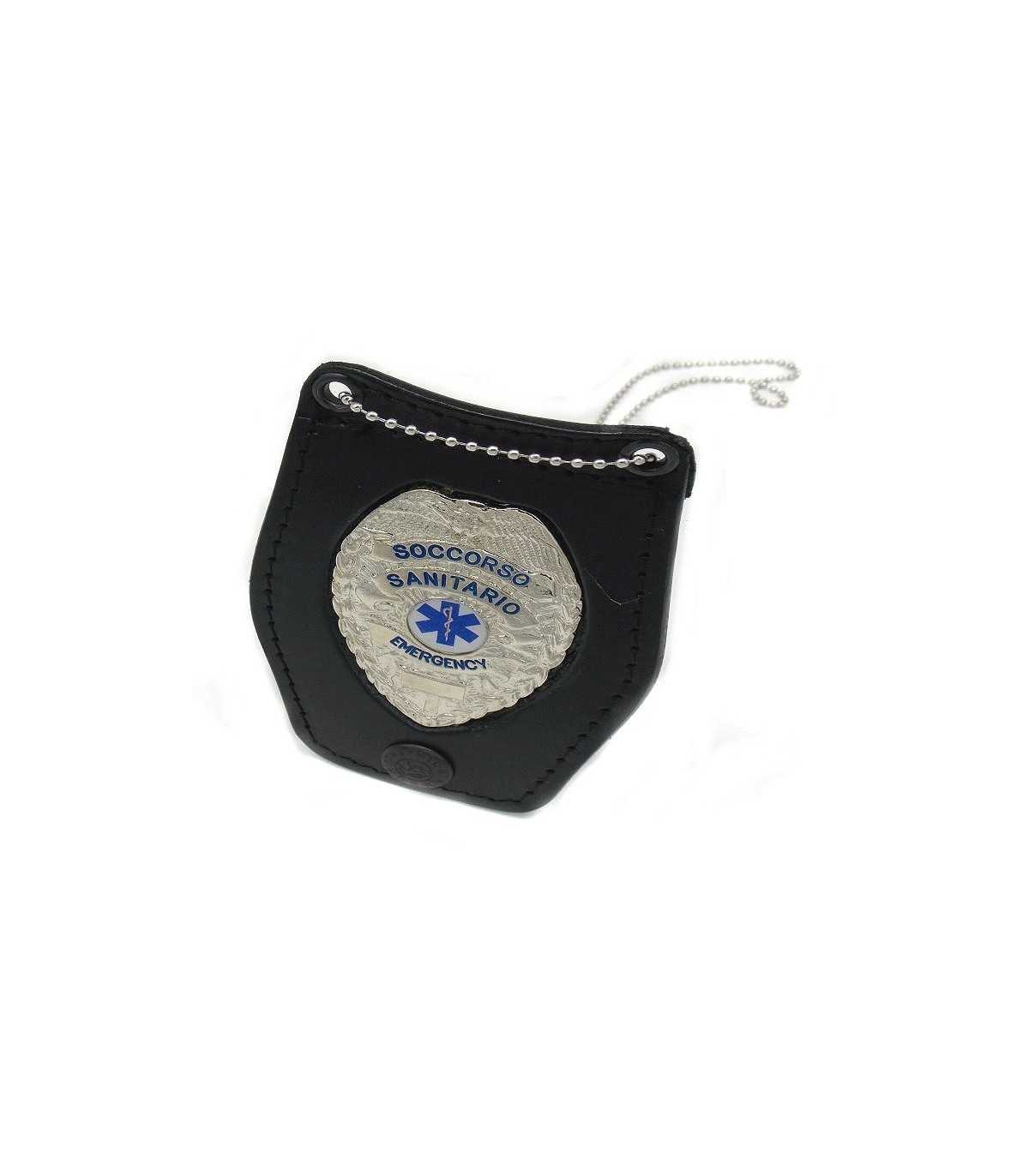 Porta placca in pelle da collo e cintura con placca Soccorso Sanitario