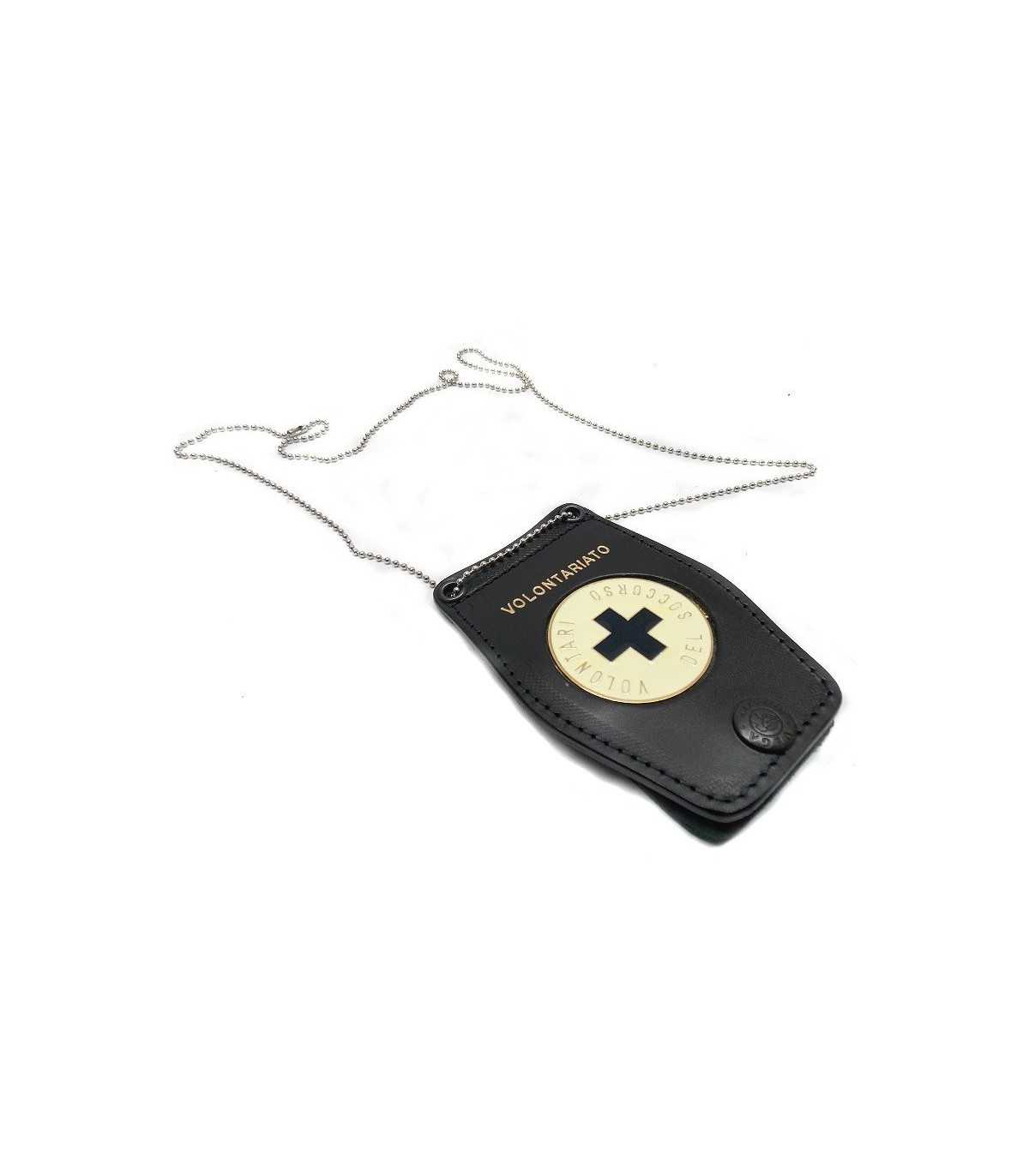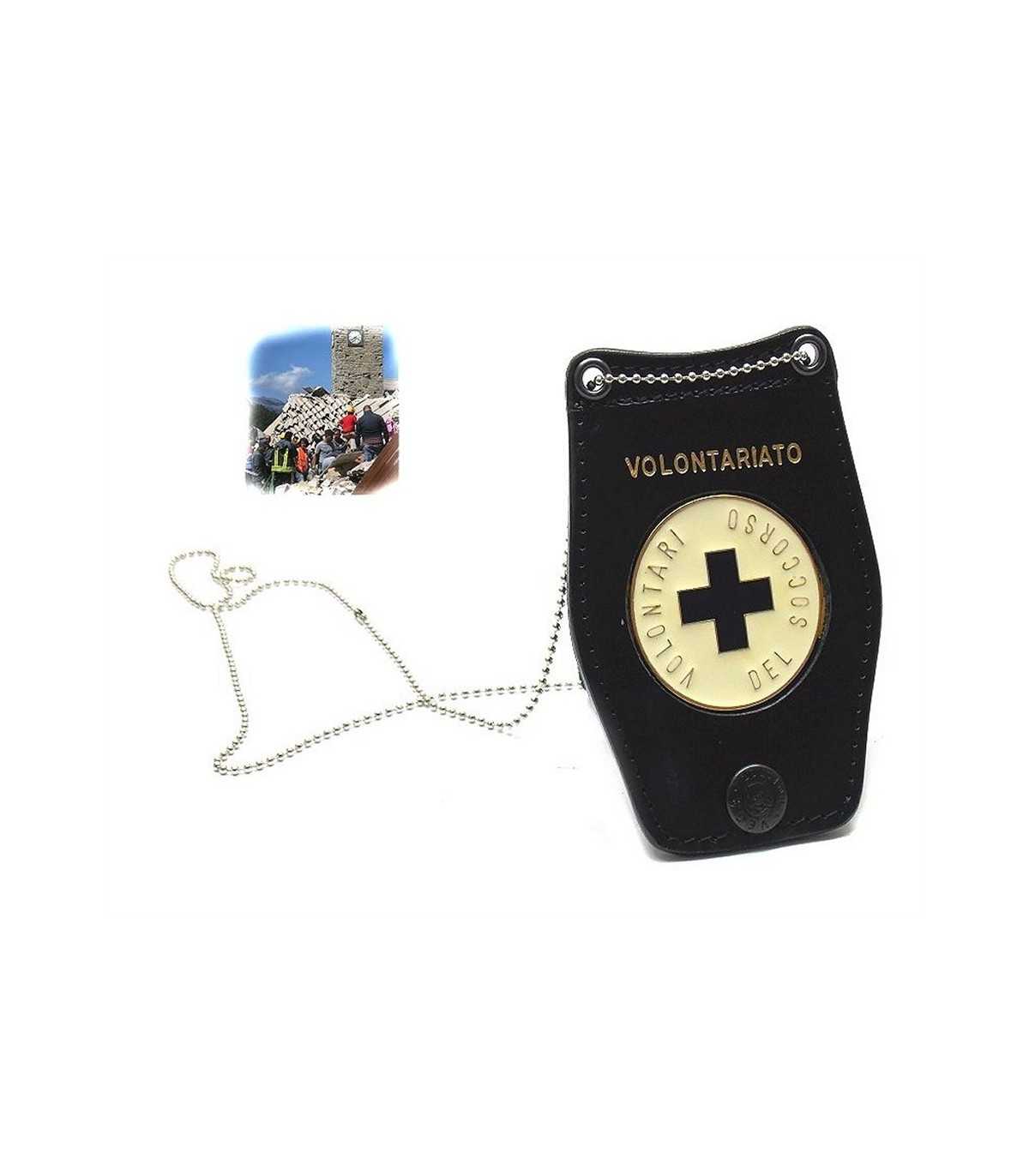 Porta placca in pelle da collo o cintura con placca Volontari del Soccorso