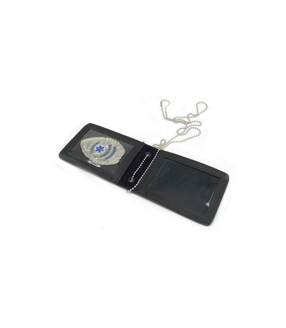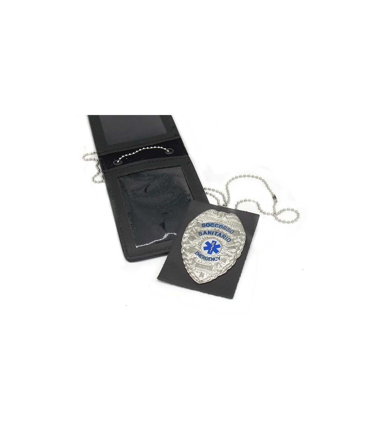 Portaplacca Vega con placca Soccorso Sanitario, portatessera verticale in pelle, catenella amovibile e chiusura a calamita