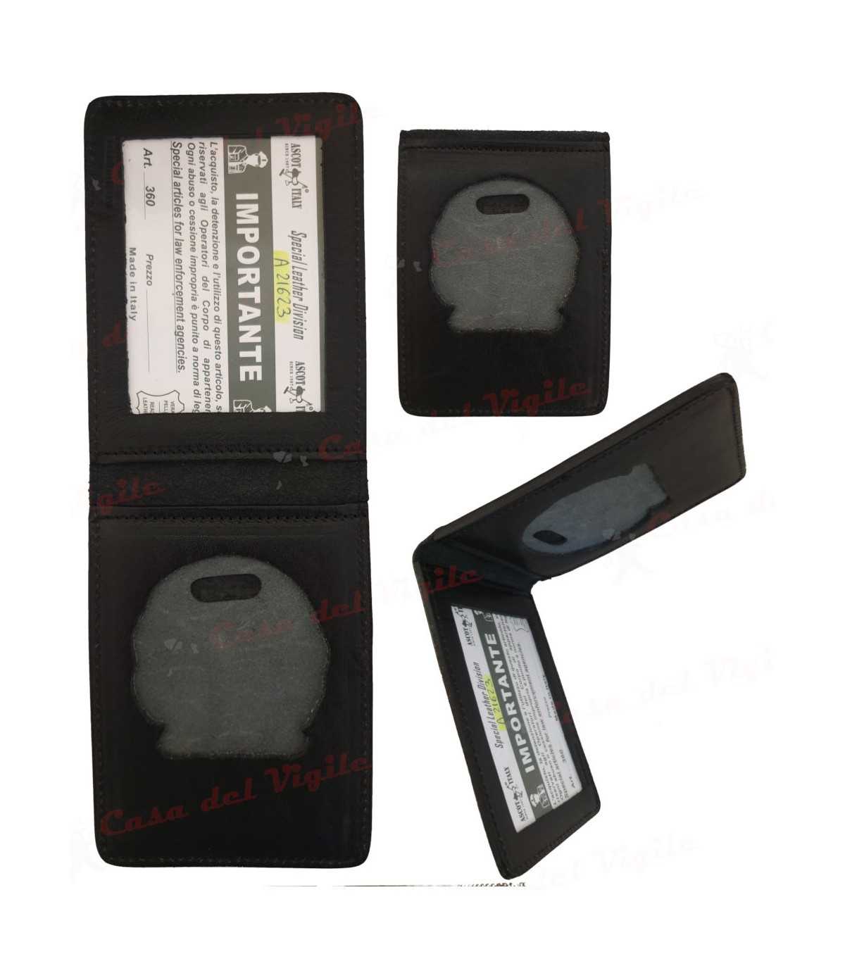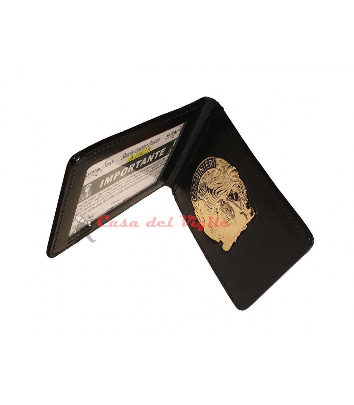 Porta tesserino e placca ASCOT in cuoio Carabinieri con placca Argento o Oro portatessera portaplacca