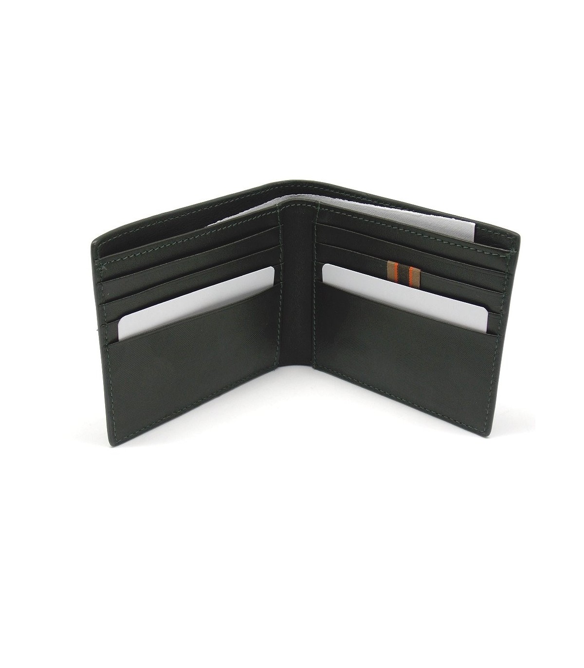 All'interno ci sono 10 scompartimenti per carte e due scompartimenti per banconote