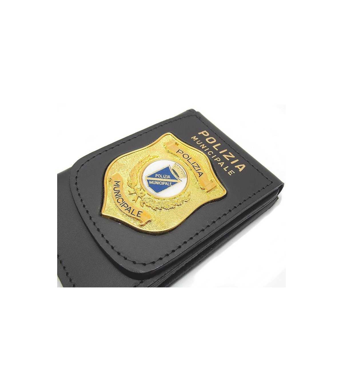 Portafoglio Vega Holster cuoio 1WD114 con placca in metallo Polizia Municipale